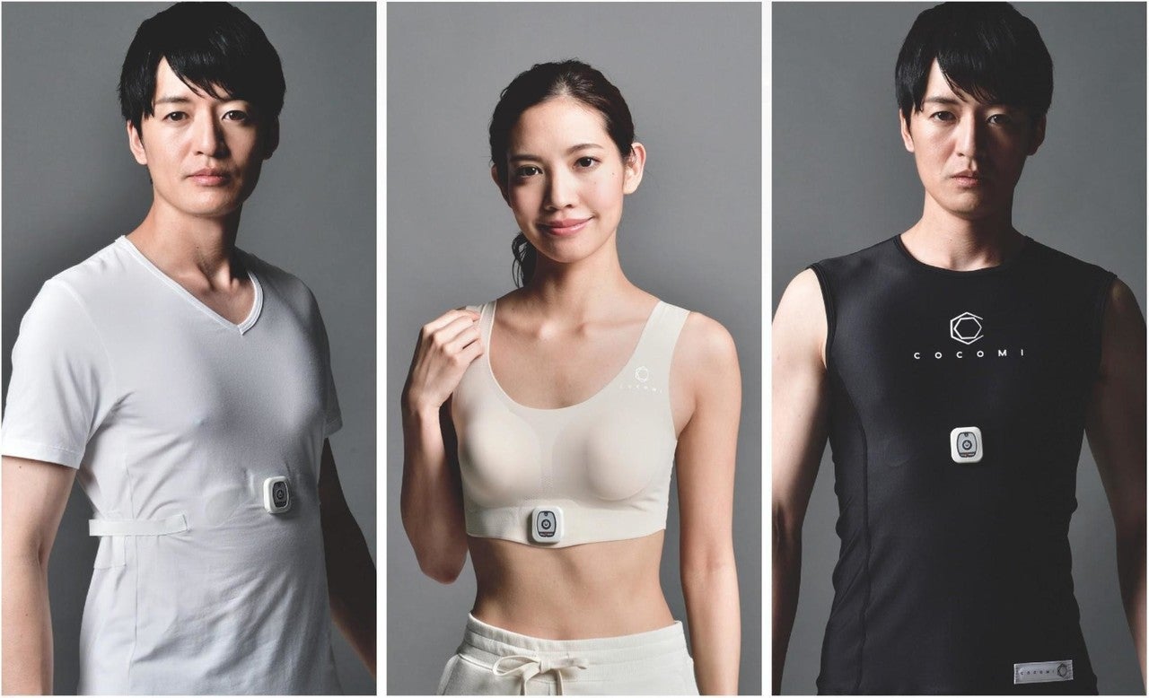 着るだけ、つけるだけで、生体情報のデータ活用ができる「COCOMI®」は、Tシャツやインナー感覚で扱える手軽さが強みだ。肌に触れても異物感の少ない肌触りで、衣服を着たままでも無線でデータの転送が可能。タブレット端末などで数値の確認ができる。