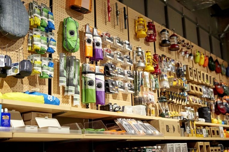 売り場にはテントは置かず初心者でも買いやすい用品を中心に揃えている