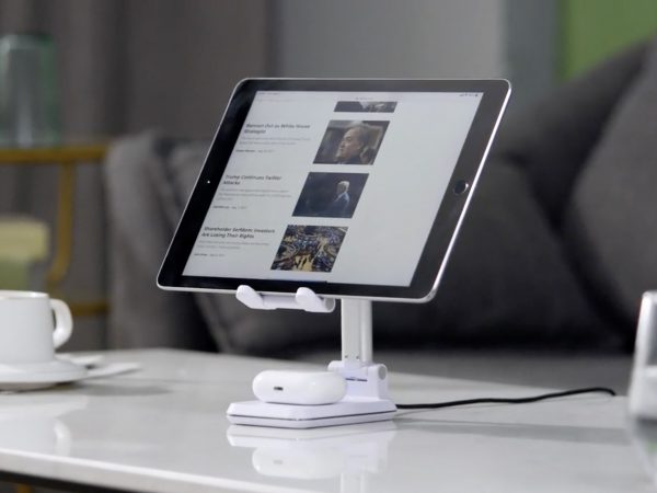 加えて、KIKR S1は丈夫な作りで、スタンドにタブレット端末を置くこともできる。残念ながら出力制限のためタブレット端末は充電できないが、スタンドとしては機能する。