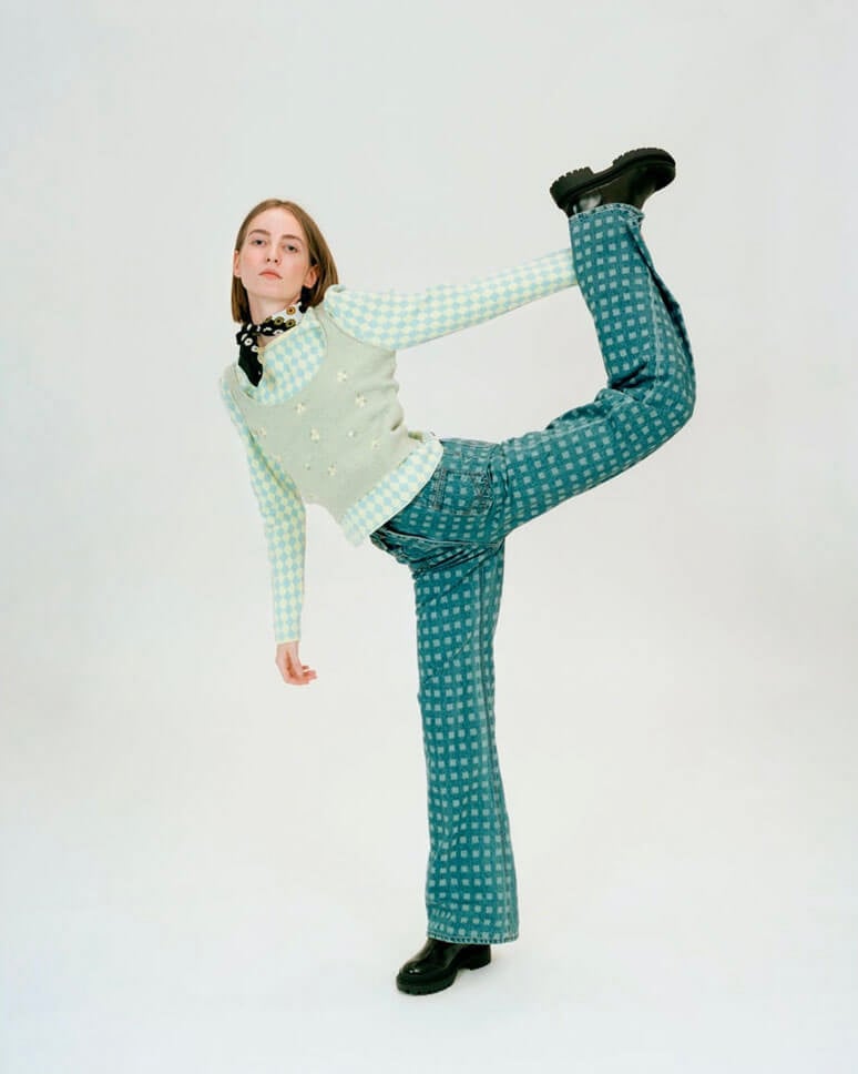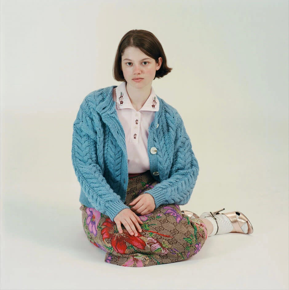 jacket by H&M, skirt and shoes by GUCCI, shirt and socks stylist’s own