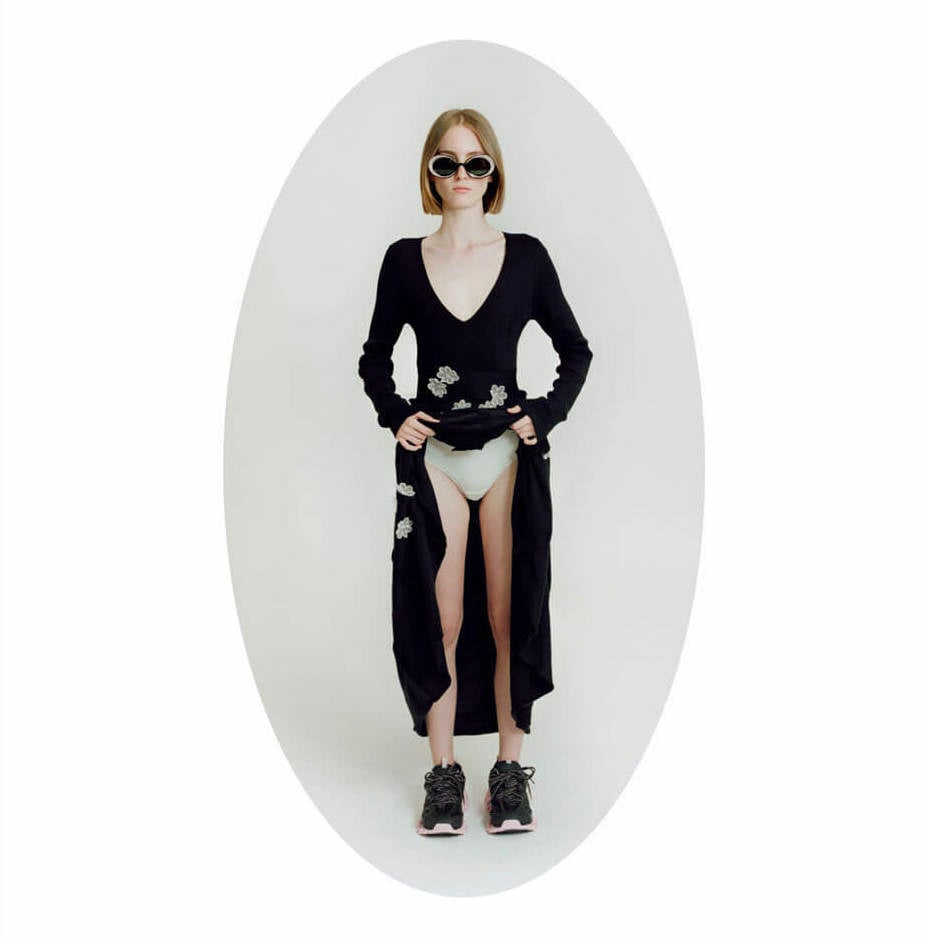 dress by CRISTINA SAVULESCU, shoes by BALENCIAGA, necklace stylist’s own