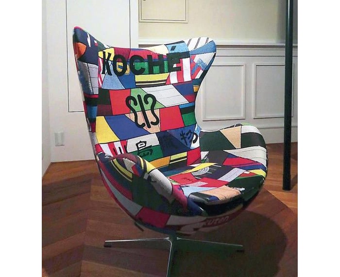 川島織物セルコンは29日まで、100年後の物作りを考える「織物屋の試み展-其の二-」を、北欧家具メーカーの「フリッツ・ハンセン」青山本店で開いている。同社の伝統技術を生かしたファブリックを、フリッツ・ハンセンのエッグチェアに張り込む協業プロジェクトだ。19年春に日本人デザイナー3人に依頼して1回目の作品を発表した。