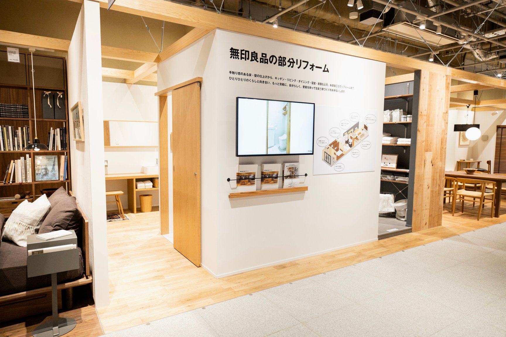 東京有明のメインフロアとなる2階では、寝具や家電、照明、キッチン用品、掃除用品、リビング用品などを販売。原研哉がデザイン監修を行ったモデルハウス「陽の家」(1615万円)を実寸大で用意したほか、無印良品が手掛ける全面リノベーションをイメージした空間を設けた。東京有明の新サービスとしては寝室、リビング、トイレといった家の一部分だけをリフォームする「部分リフォームサービス」や、収納、インテリア、掃除の相談を受け付ける「くらしなんでも相談所」、セミナー、ワークショップなどでDIYをサポートする「DIY」を展開。法人住空間サービスでは東京有明のスタッフが実際に働くオフィスをショールームとして公開し、収納家具の使用方法や家電の配置を企業に向けて提案する。また、新型コロナウイルス感染症対策も考慮し、店舗全体でセルフレジを約7割導入したほか、初の商品受け取りロッカーを設置。店頭の在庫不足により取り寄せた商品や、オンラインストアで購入した商品を店員と対面せずに受け取ることができる。