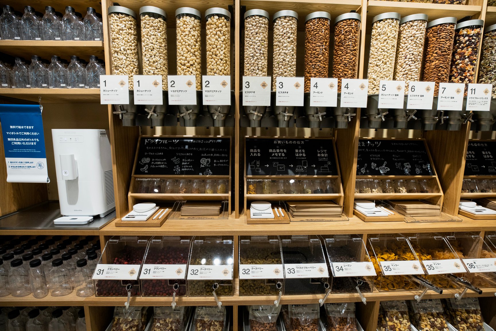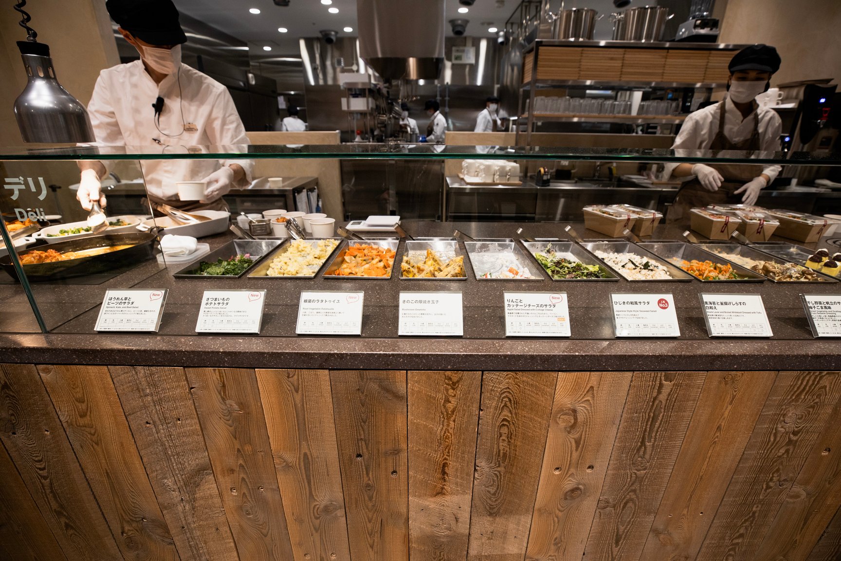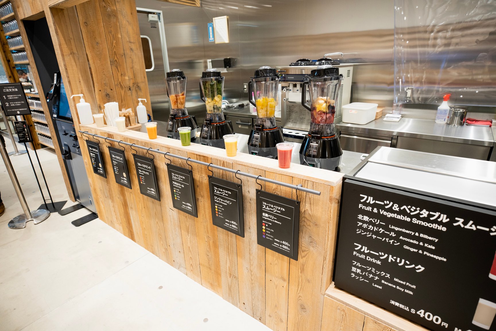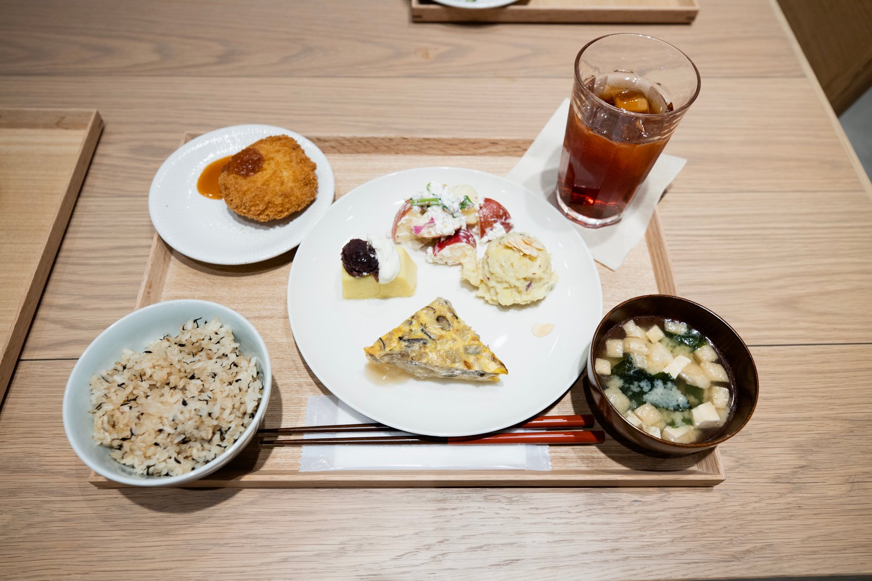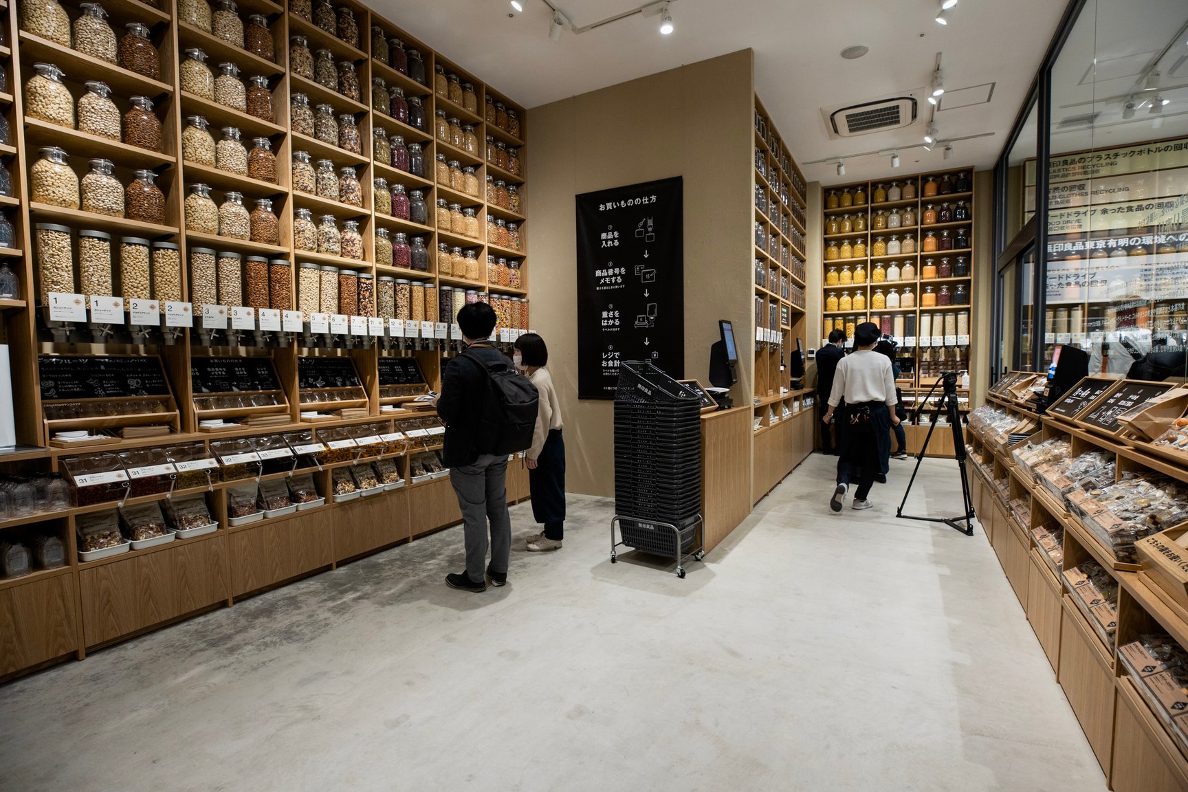 食に関する商品を集積した1階は、店内で焼いたパンを販売する「MUJI Bakery」やカフェ「Café&Meal MUJI」、旬の野菜と果物を使用したジュースを販売する「ジューススタンド」を用意するほか、菓子、コーヒー豆、雑穀、ナッツ、ドライフルーツといった50種類以上の食品を1gで4円、合計20gから販売する「食品の量り売り」、32種類の茶葉を必要な量だけ購入できる「ブレンドティー工房」を初めて展開。MUJI Bakeryでは東京有明限定でカレーパン(240円)を販売する。そのほか、冷凍食品や青果、飲料などを取り揃え、地域の人々の生活を食から支える暮らしの拠り所を目指す。