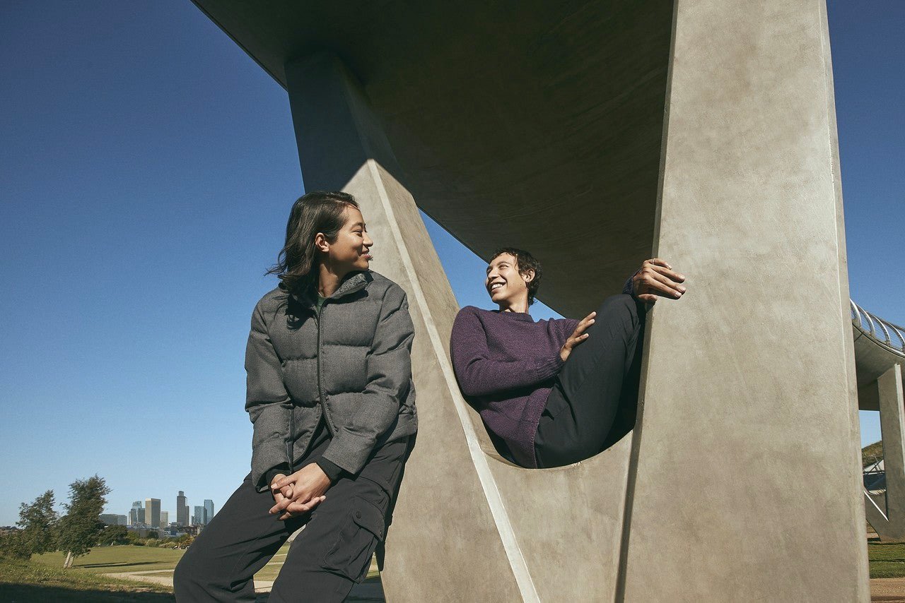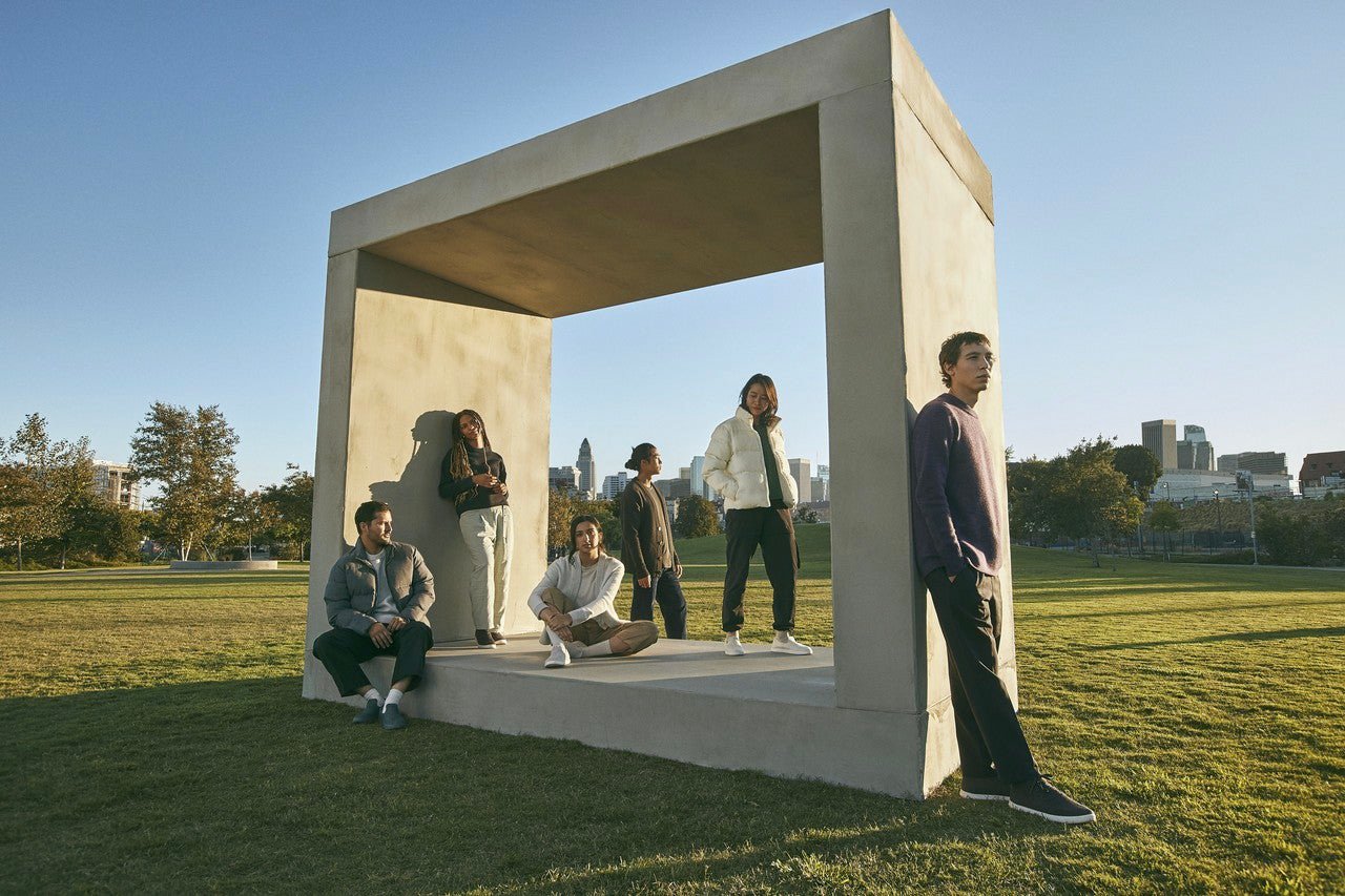 他にも、世界で最も環境に優しい製法でつくられた繊維と言われるテンセル™とリサイクルポリエステルを組み合わせた中綿を使用し、有害撥水加工剤を使わない撥水加工を施したダウンを使わないダウン「Trino™パファー」や、Allbirdsのシューズにも使われているメリノウールを使用したセーター・カーディガンなどを展開している。