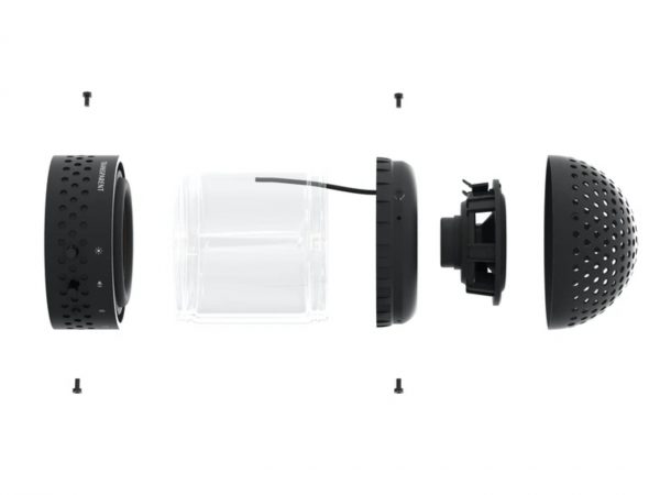 ボディが透明なのはライトとしての機能を搭載するからで、オンにすると周囲を照らす。ランタンをイメージしているだけあってLight Speakerのライトは柔らかで温かみのある光だ。明るさ温度は900〜3500K。付属のノブで明るさを調整できる。
