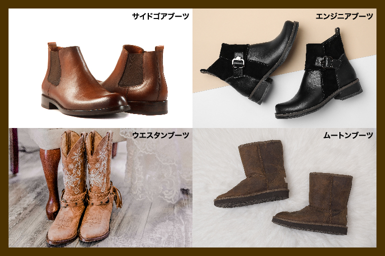 アメリカの西部開拓時代に履かれていた乗馬靴が由来。側面にキルティングやステッチなどの装飾があり、カウボーイブーツとも呼ばれます。アンクル~ハーフ丈のものが多く、ワントーンで装飾されたものからカラフルなものまで、コーディネートの主役になるブーツです。スッキリまとめたコーデの足元に、ウエスタンでボリュームを出すのはいかがでしょうか。丈夫で長く愛用できるのもポイント。