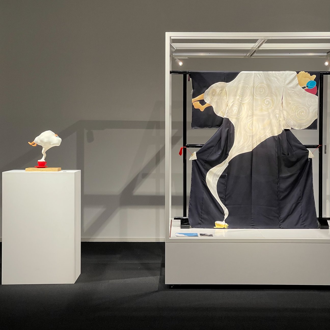 その手前には西洋風の近代建築にマッチしてあたかもそこに昔からそのままの体で展示されていたかのような「たけだ美術」が展示する有元利夫作品。