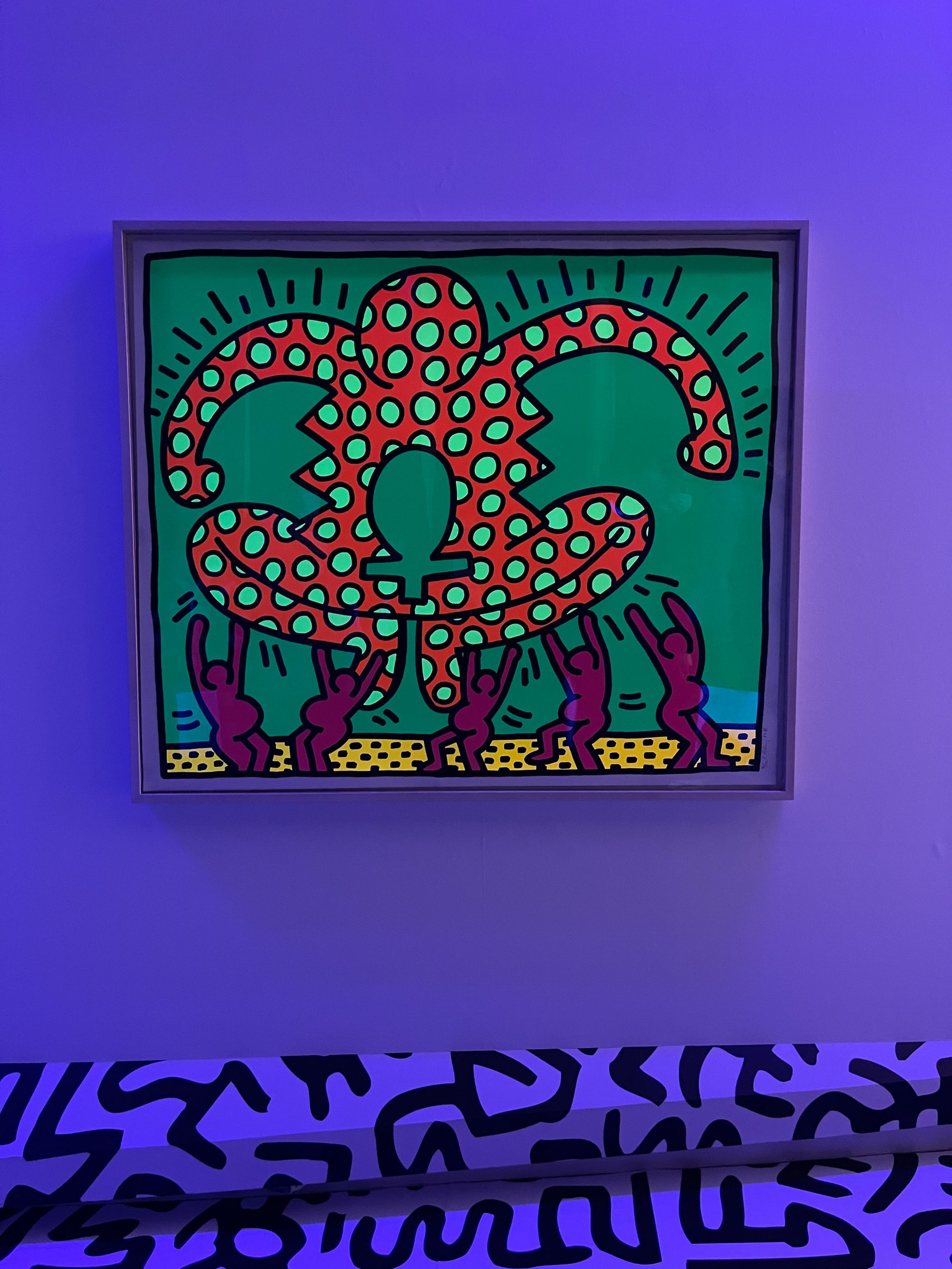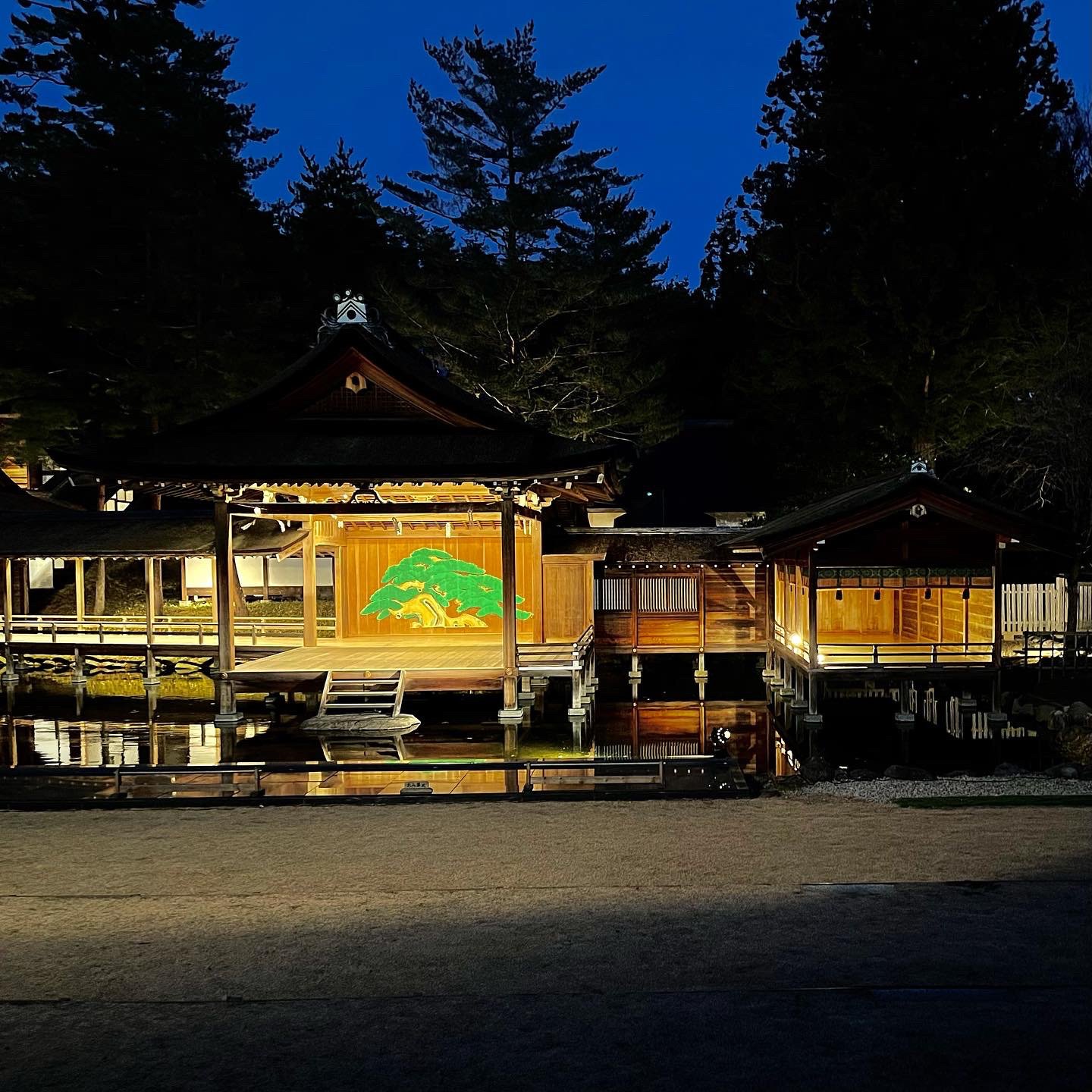 他の会場として、山林に突如現れる異形の北川原温建築、中村キース・ヘリング美術館(製薬会社にいた中村和夫が集めたキース・ヘリング作品300点が展示されている)、水に反射する能楽堂に東京ドーム2つ分の広さを持つ身曾岐神社(みそぎじんじや)なども参画。ちなみに身曾岐神社能楽堂に描かれた「老松」は文化勲章受章者の故守屋多々志(ただし)画伯が描いた、空から降りてきた根のない老松だそうだ。今回はこれら3会場を感染症対策を施した2台のチャーターバスで巡る形での開催になった。
