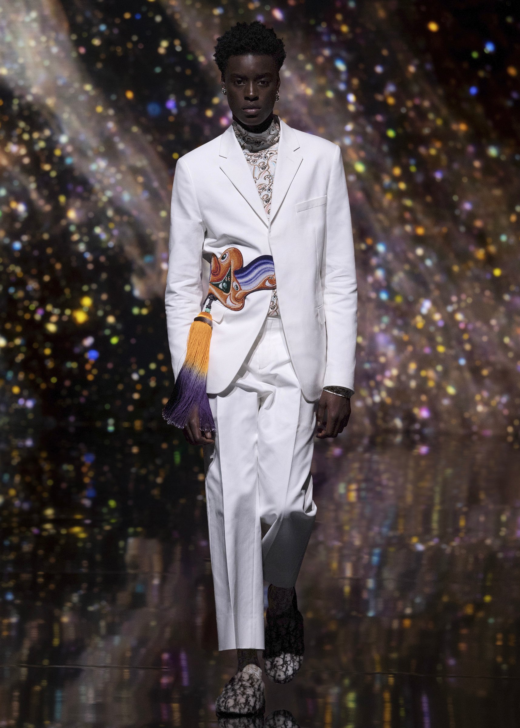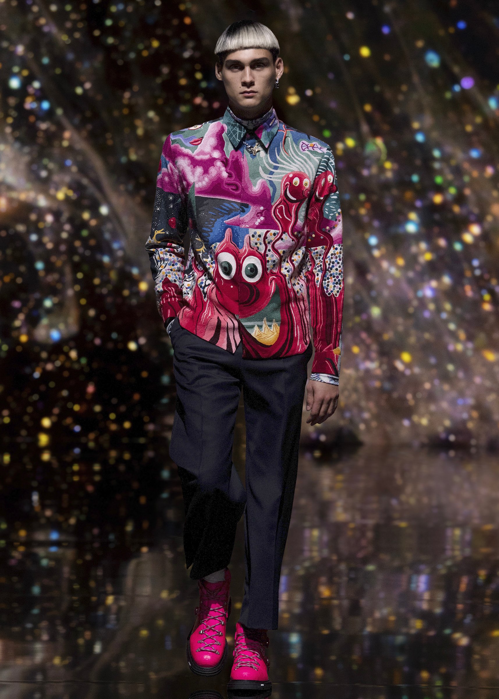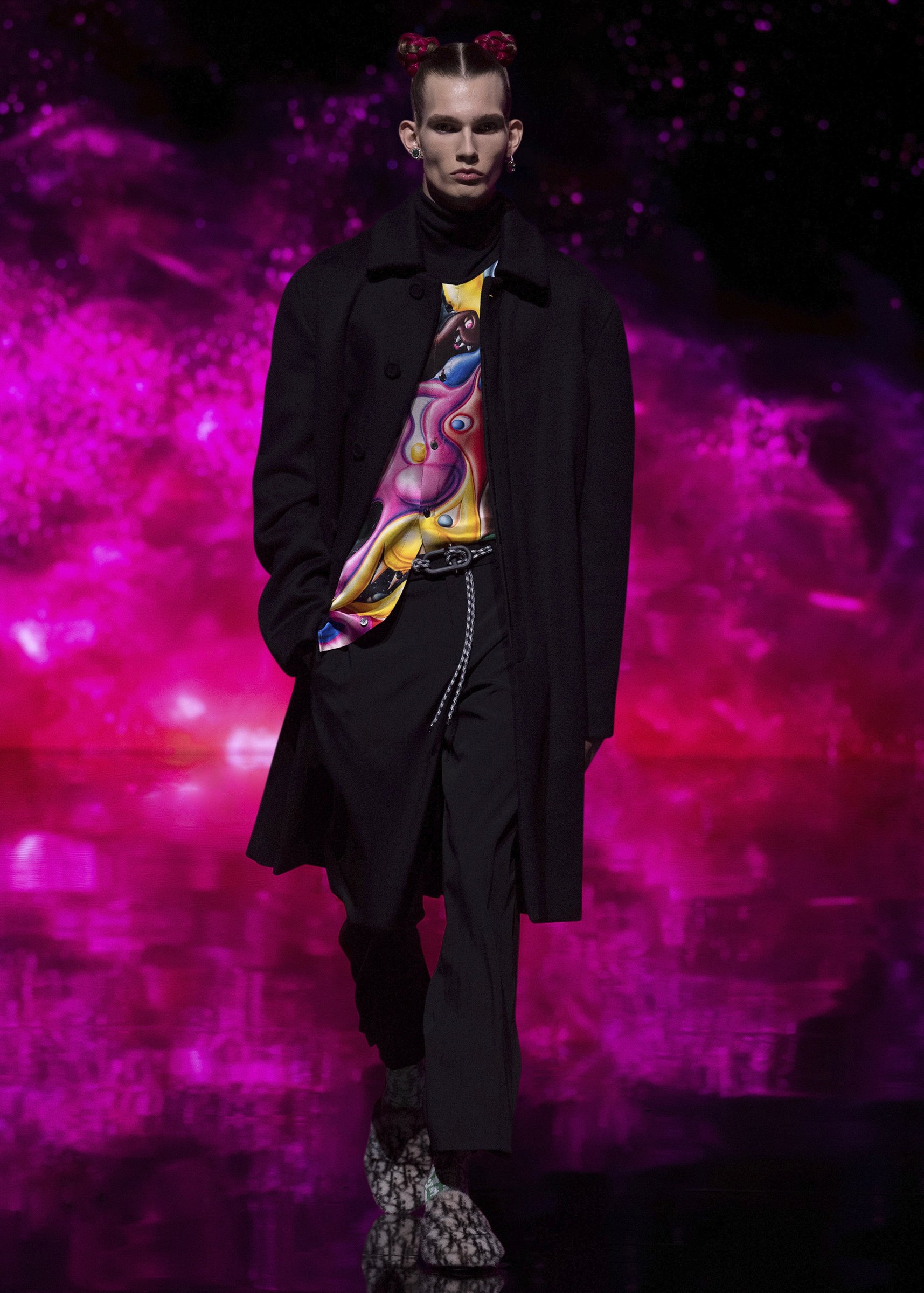 「ディオール(DIOR)」が、キム・ジョーンズ(Kim Jones)が手掛けるメンズの2021年フォールコレクションを、中国・北京とオンラインで発表した。コレクションでは、ポップアートを代表するアメリカ人アーティスト ケニー・シャーフ(KENNY SCHARF)とコラボレーション。宇宙空間のダイナミックな映像を背景に、クラシックスタイルとサイケデリックなカラー、そしてポップなモチーフを融合した。