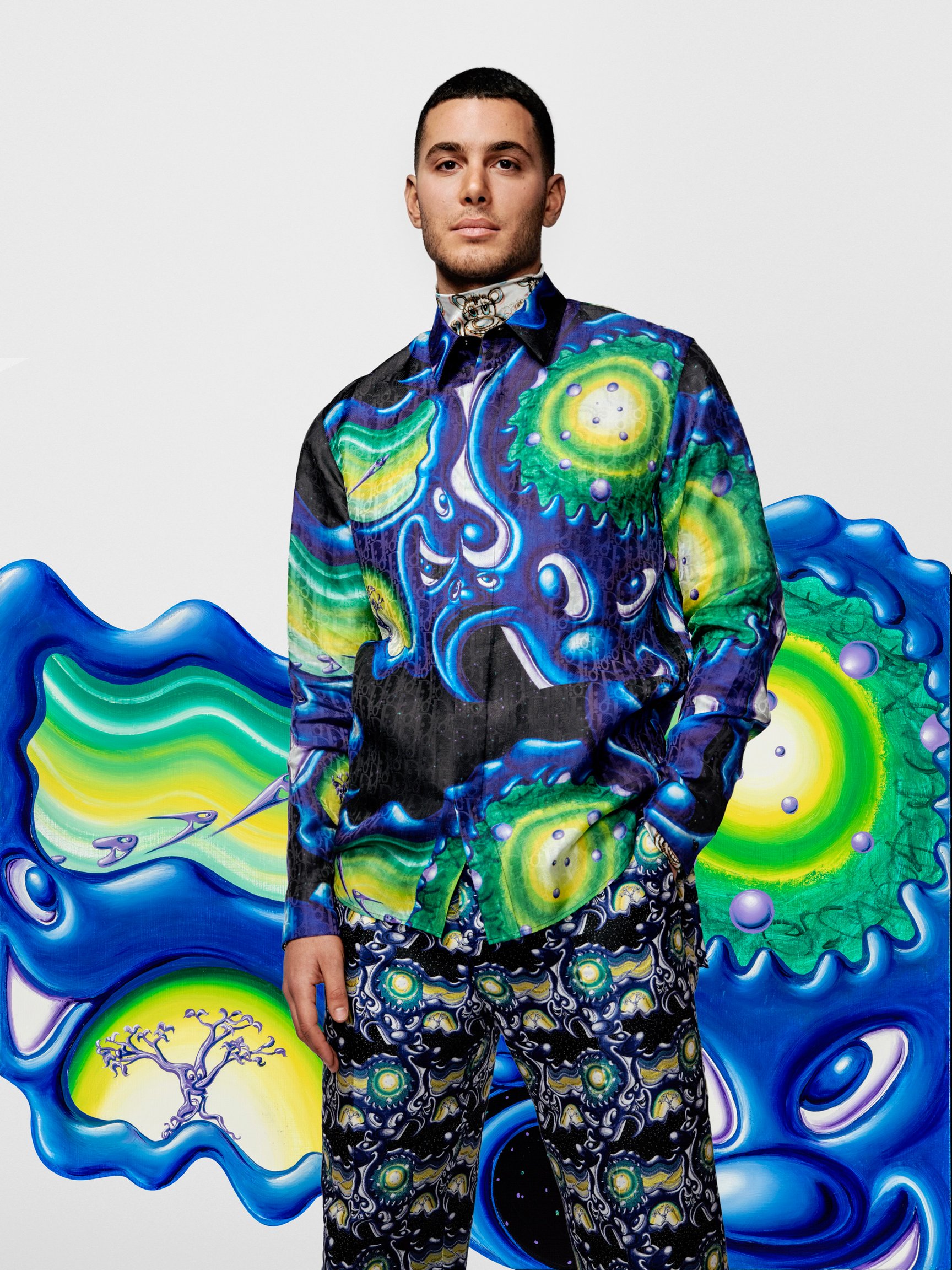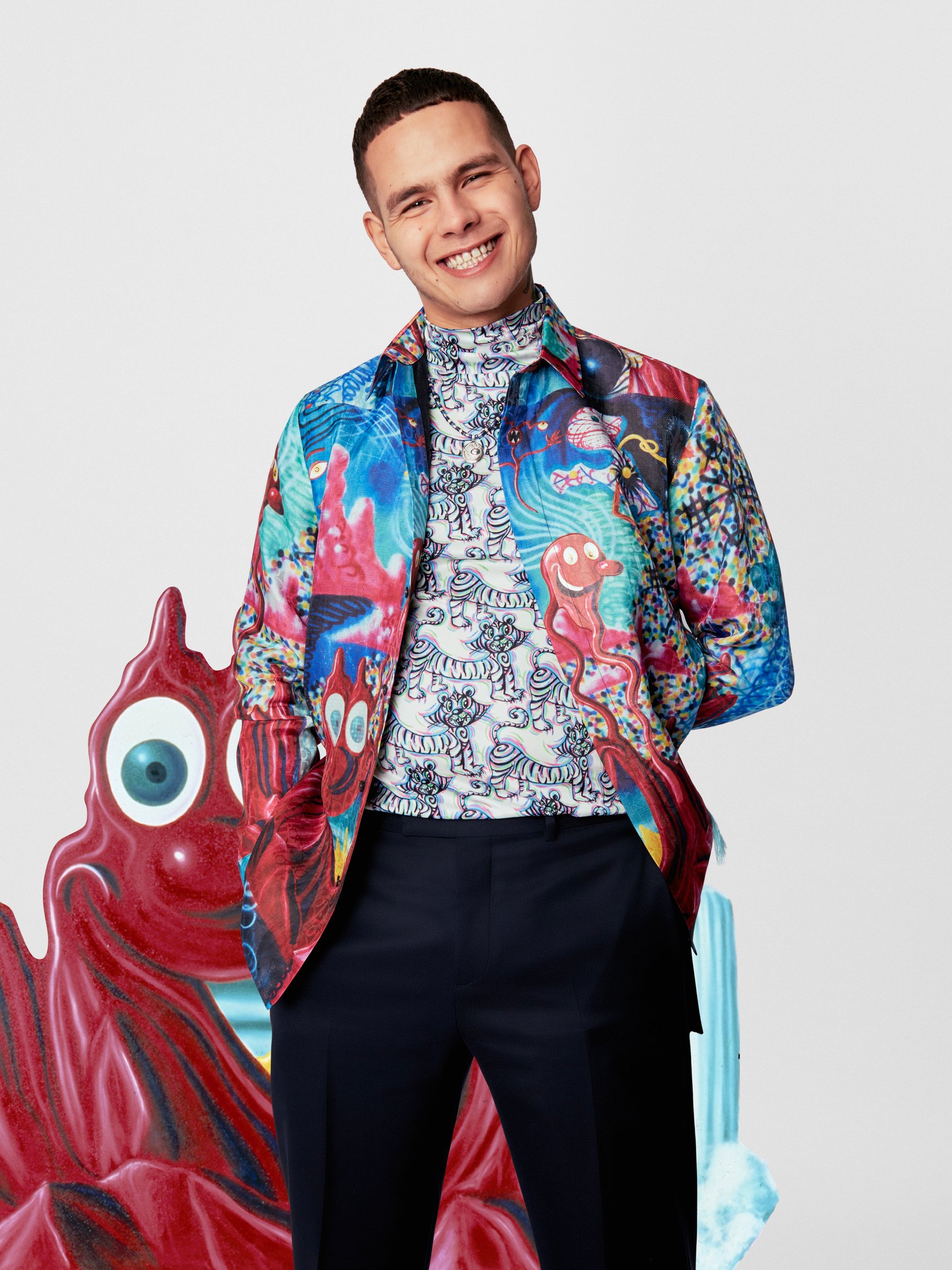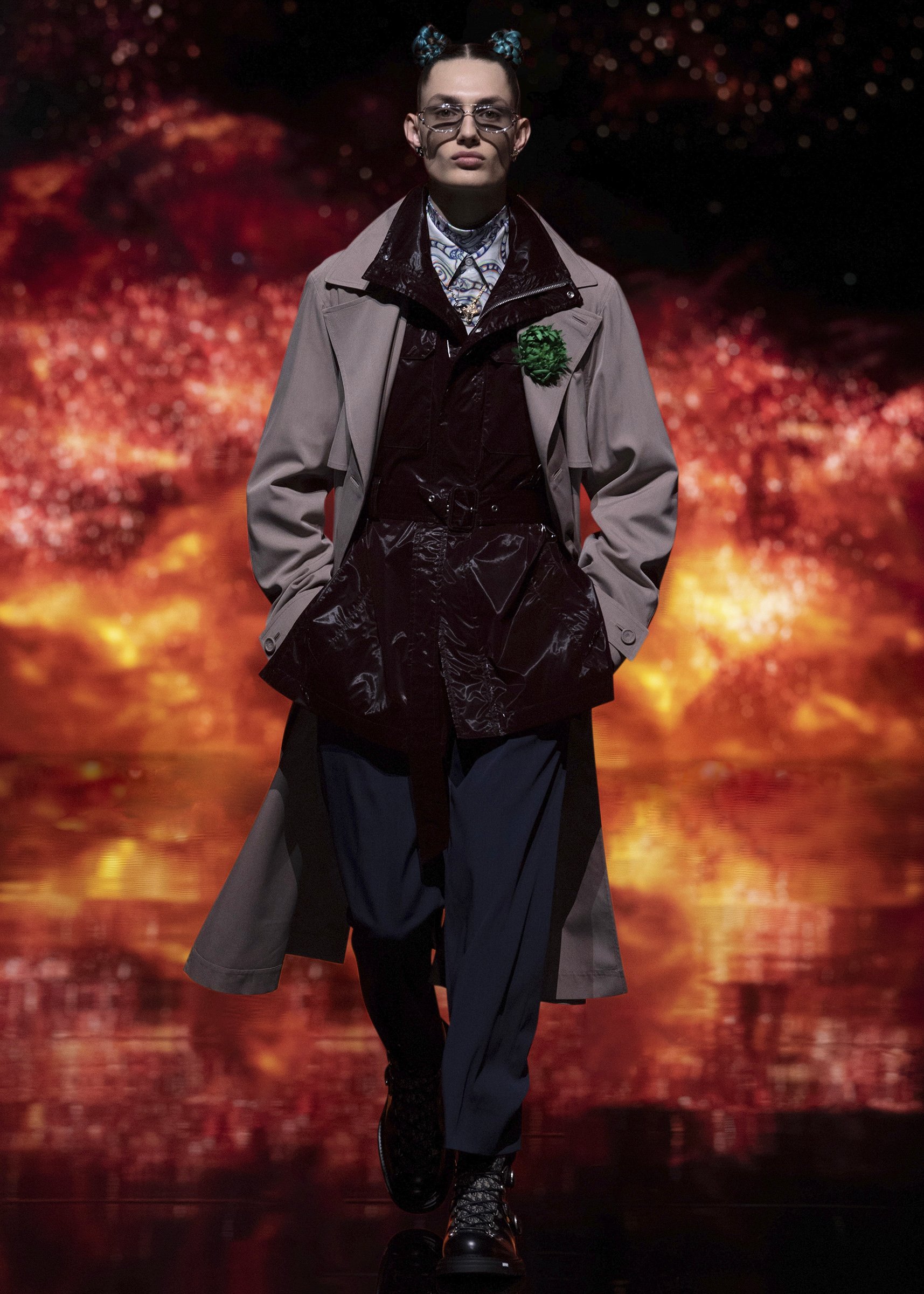 「ディオール(DIOR)」が、キム・ジョーンズ(Kim Jones)が手掛けるメンズの2021年フォールコレクションを、中国・北京とオンラインで発表した。コレクションでは、ポップアートを代表するアメリカ人アーティスト ケニー・シャーフ(KENNY SCHARF)とコラボレーション。宇宙空間のダイナミックな映像を背景に、クラシックスタイルとサイケデリックなカラー、そしてポップなモチーフを融合した。