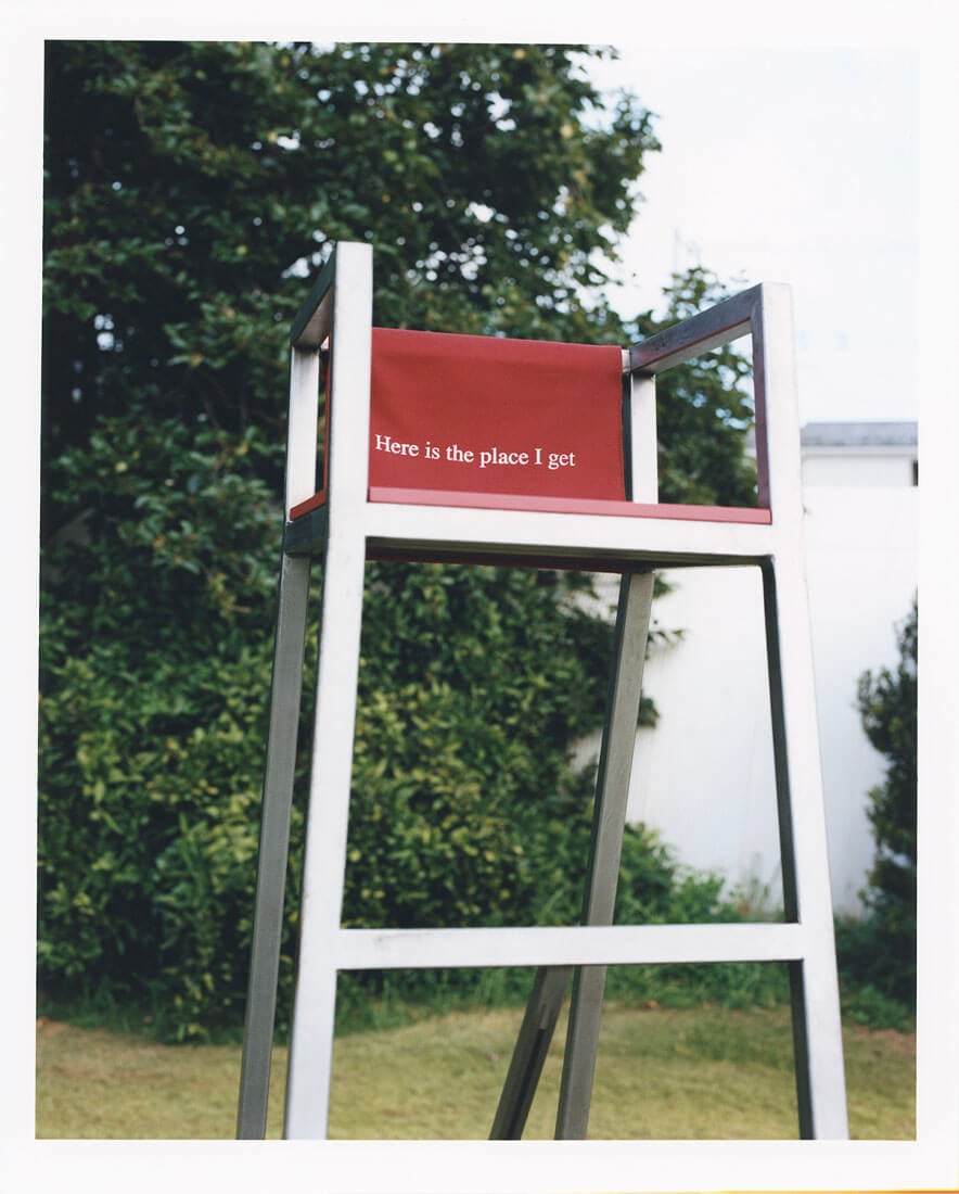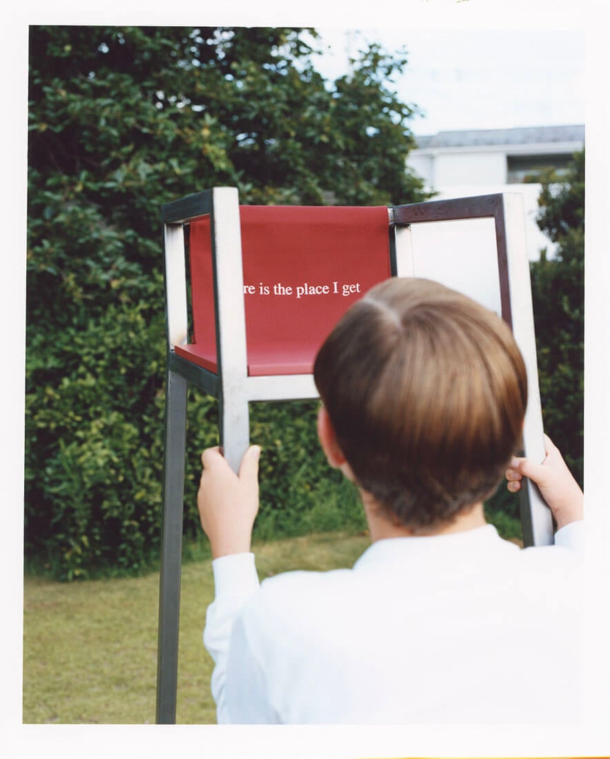 また登った先の椅子の背もたれには、“Here is the place I get(私が獲得する場所)”といった文言を添えており、この椅子(装置)の中で生まれている体験や時間の移り変わりを強調しました。
