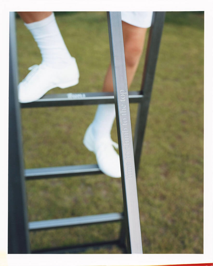 Also, on the back of the chair which placed in end of the ladder says "Here is the place I get”, to emphasize the transition of time and experience that is being created in this chair(equipment).