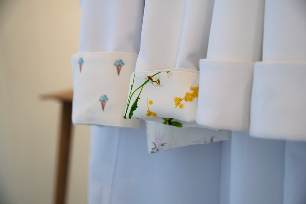 おおまかにいうと、トップスとボトムで構成される手術衣を「スクラブ」、ドクターコートやナース服を「白衣」と呼んでいます。私たちの挑戦はテーラード白衣から始まりました。弊社のプロダクトの優位性は、イタリアのテーラー技術を取り入れた仕立てとスタイリッシュなデザイン、独自に極めた機能性の高い上質な素材にあると自負しています。