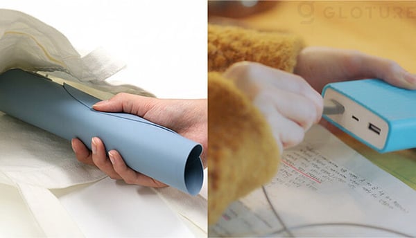 マットの加熱はUSBから電源を取るシステムなので、外出先ではモバイルバッテリーのUSBポートから給電することもできますよ。