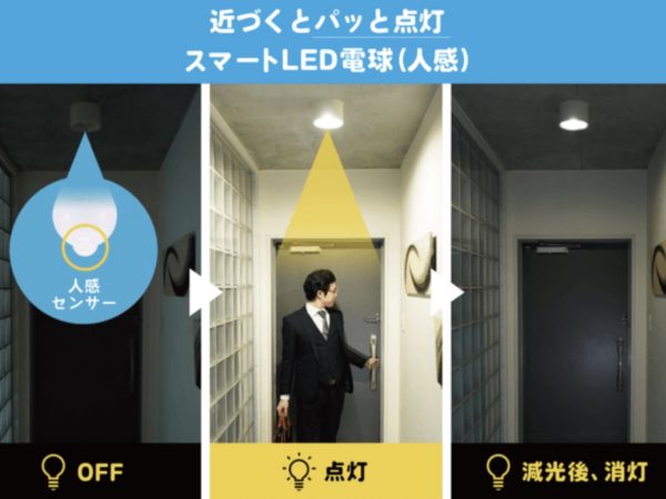 Wi-Fiと接続させることで、電球が人の動きを検知すると、その旨をスマホ通知するというもので、防犯に役立てたり遠隔から家族の帰宅などを把握したりするのに使える。
