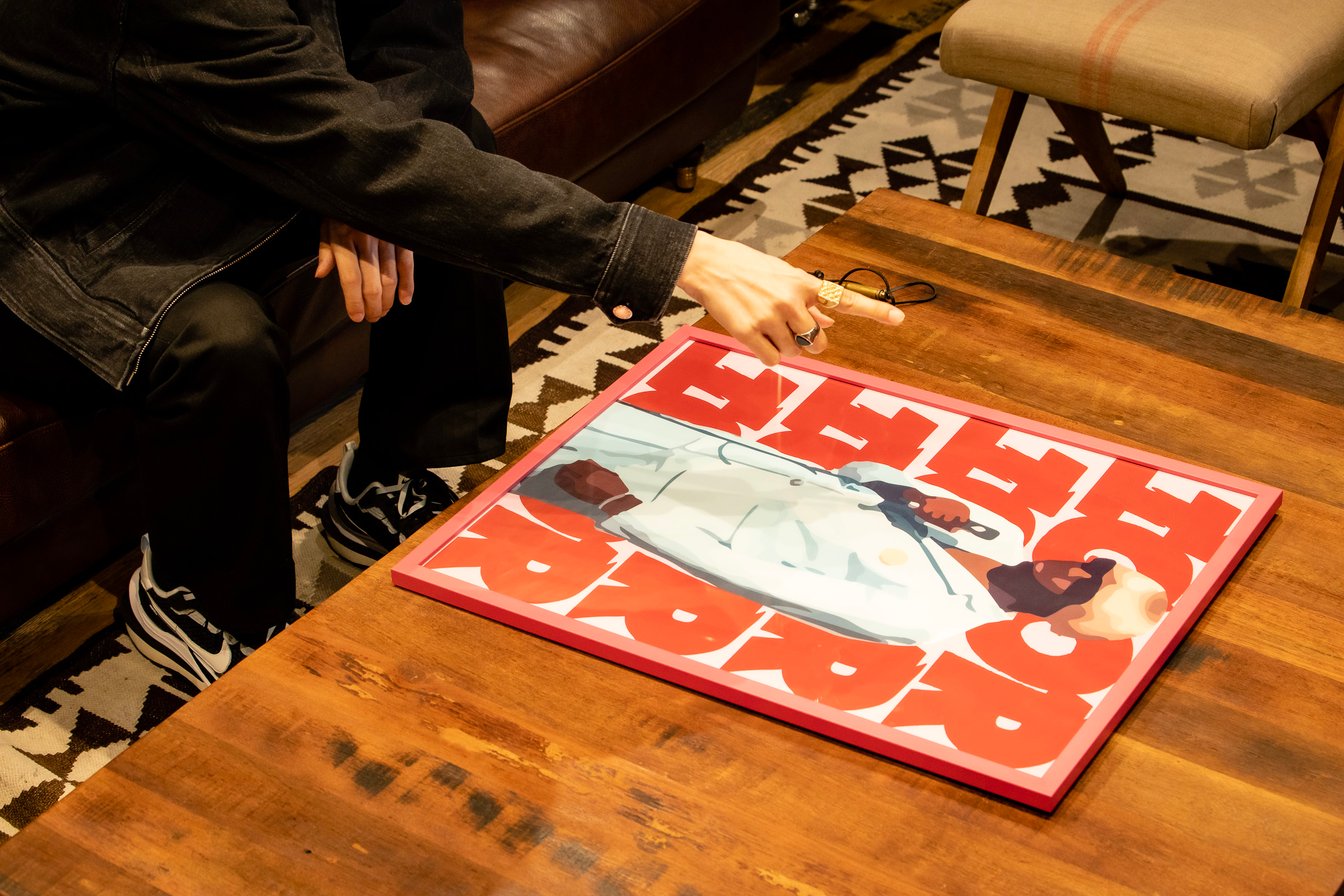 F:タイラー・ザ・クリエイター(Tyler, The Creator)のアルバム「IGOR」がモチーフでしょうか。アート作品はいつ頃から購入されているんですか?