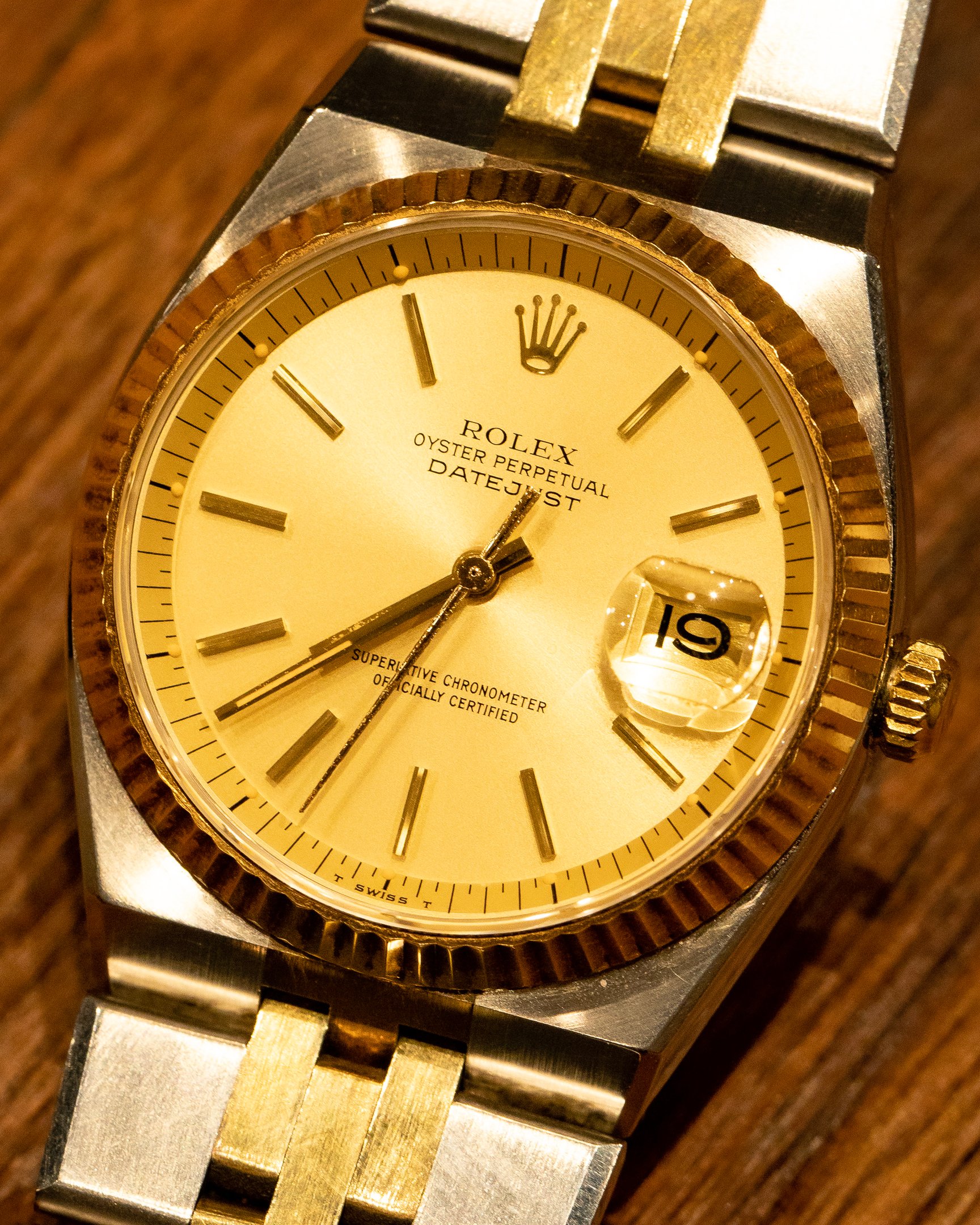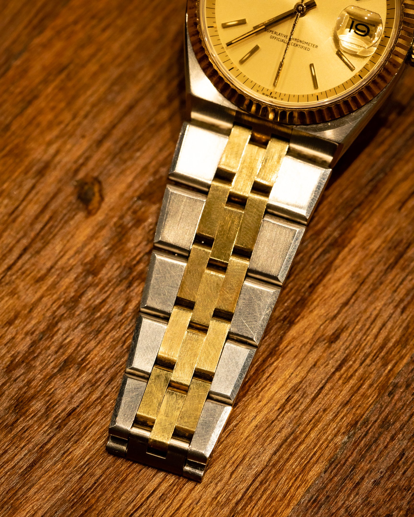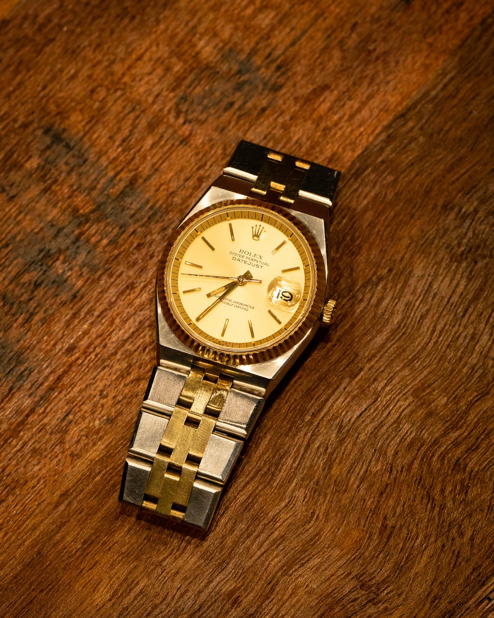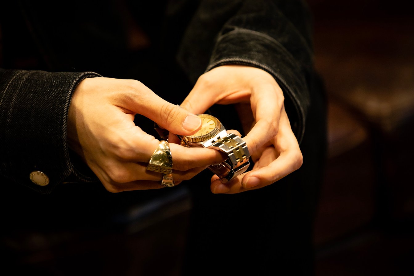 川谷:ベルトですかね。全て同じ素材を使用したベルトではなく、ステンレススチールとイエローゴールドのコンビで、ベルト部分がツートンカラーというイメージはロレックスになかったので気に入っています。イエローゴールドも少しくすんだ絶妙な色味で、その渋さが好きです。あとは、丸みを帯びていない、角張ったオイスターケース。少し変わったデザインですが、腕につけると馴染むんですよ。