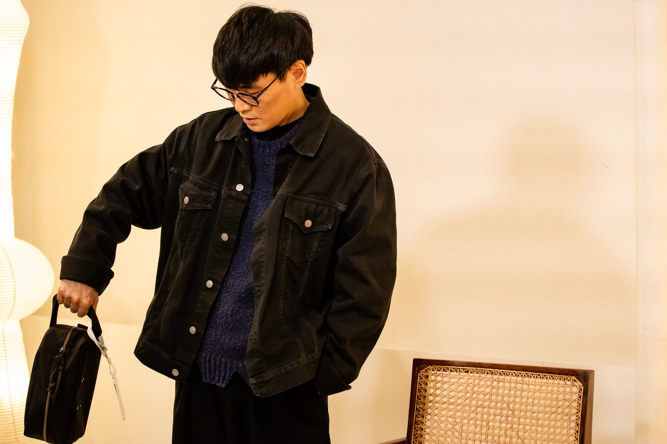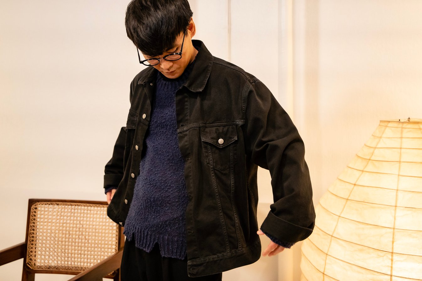 山口:そうですね、カラー違いです。まず今着ている黒を持っていて、かなり大きめでドカッと着るのがいい感じなんです。袖は長いのでロールアップして着ています。すごく気に入ったので新しく見つけて買ったのが、こっちのウォッシュがかかったタイプ。黒のコーディネートにニュアンスが付けられるかなと思って、手に入れました。