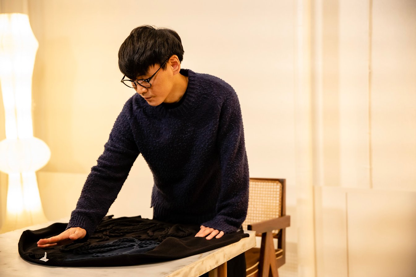 山口:ローファーを履いても雰囲気が増すと思います。ロエベのニットって、ジョナサン・アンダーソンの遊びを感じるので好きなんですよ。でもこれ、僕の周りでは誰も可愛いって言ってくれくないんですけど......