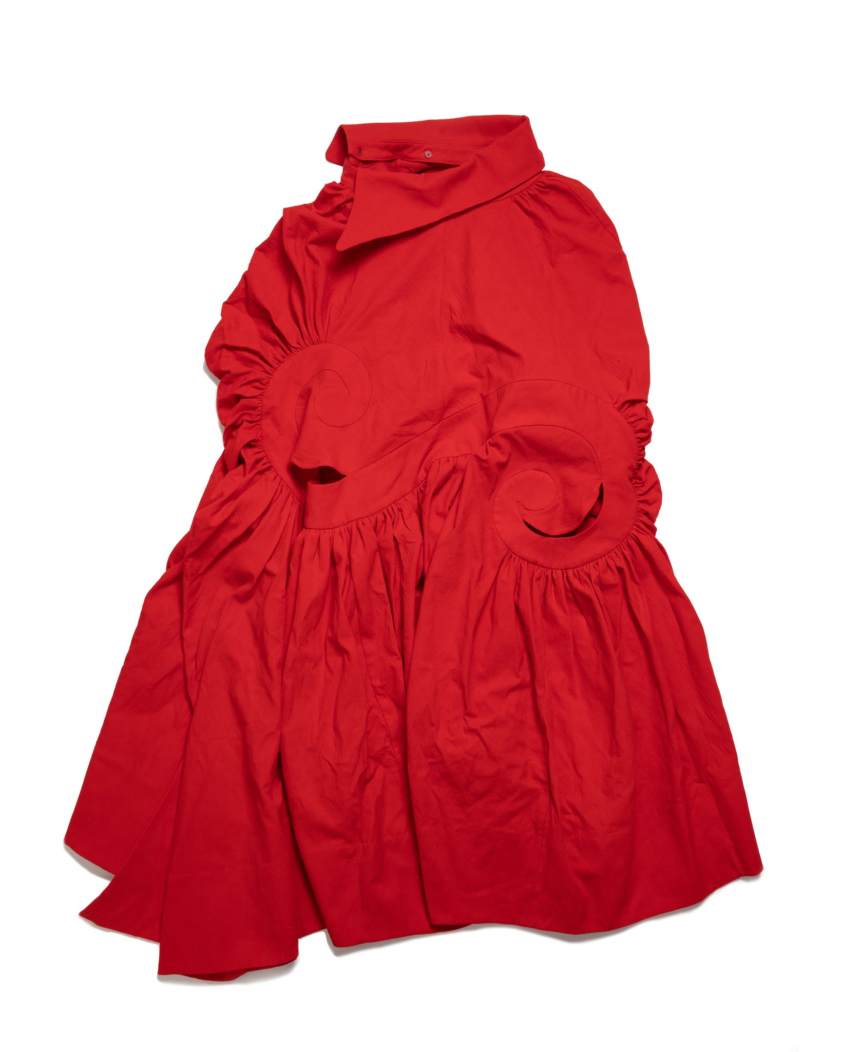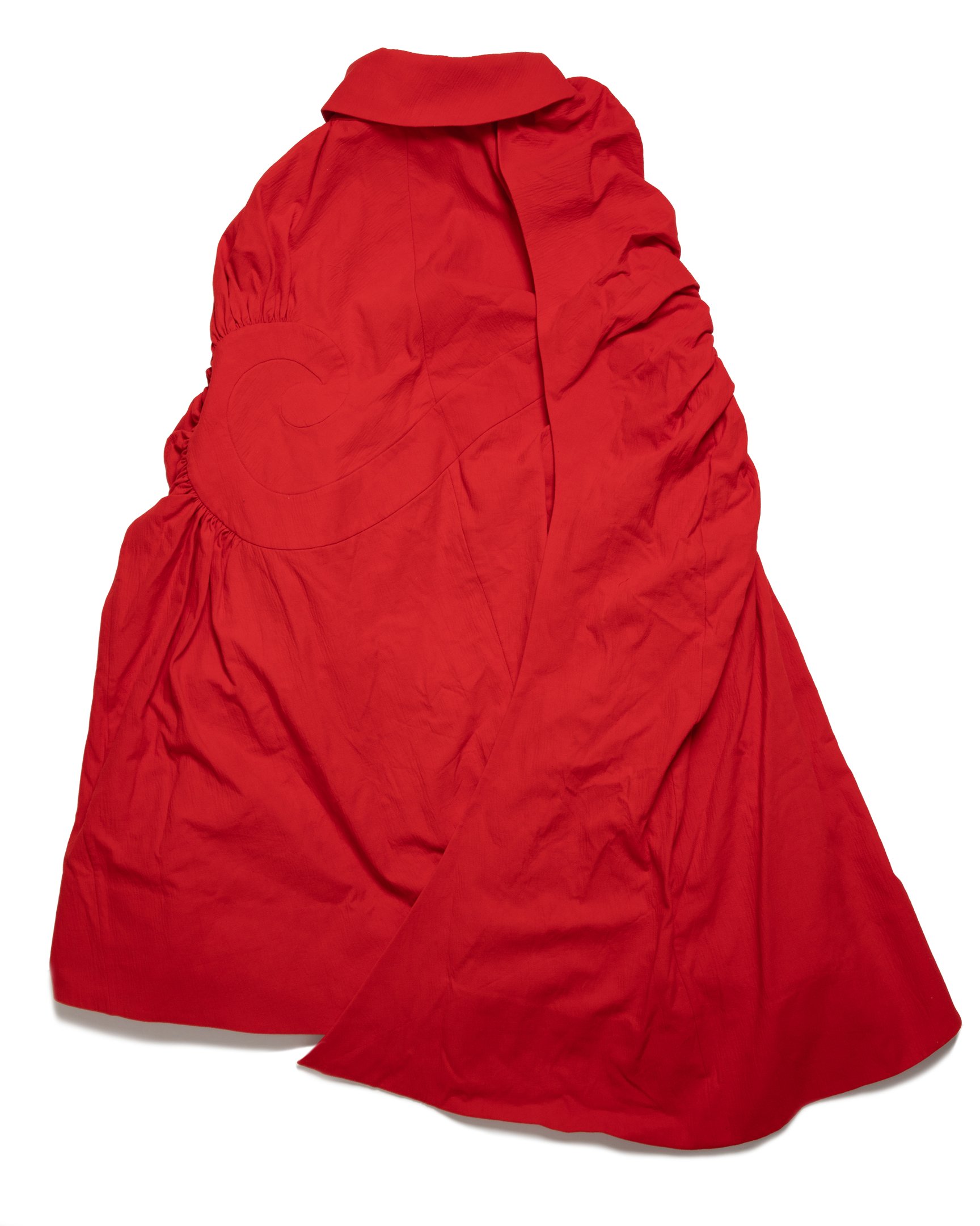 大平:服って最初は一本の糸や一つの写真から始まって、幾重の工程を経て形になるじゃないですか。そのプロセスもファッションデザイナーのすごい部分だなと思うんですが、それに加えて、ああいった大規模なショーという形にも昇華している。そのダイナミックさが美しくて、めちゃくちゃ感動したんです。そういう経験をさせてもらった時には、なるべくコレクションピースを買いたいなという気持ちがあって、今回はショーで1体目が着ていてインパクトのあったこのケープを買いました。
