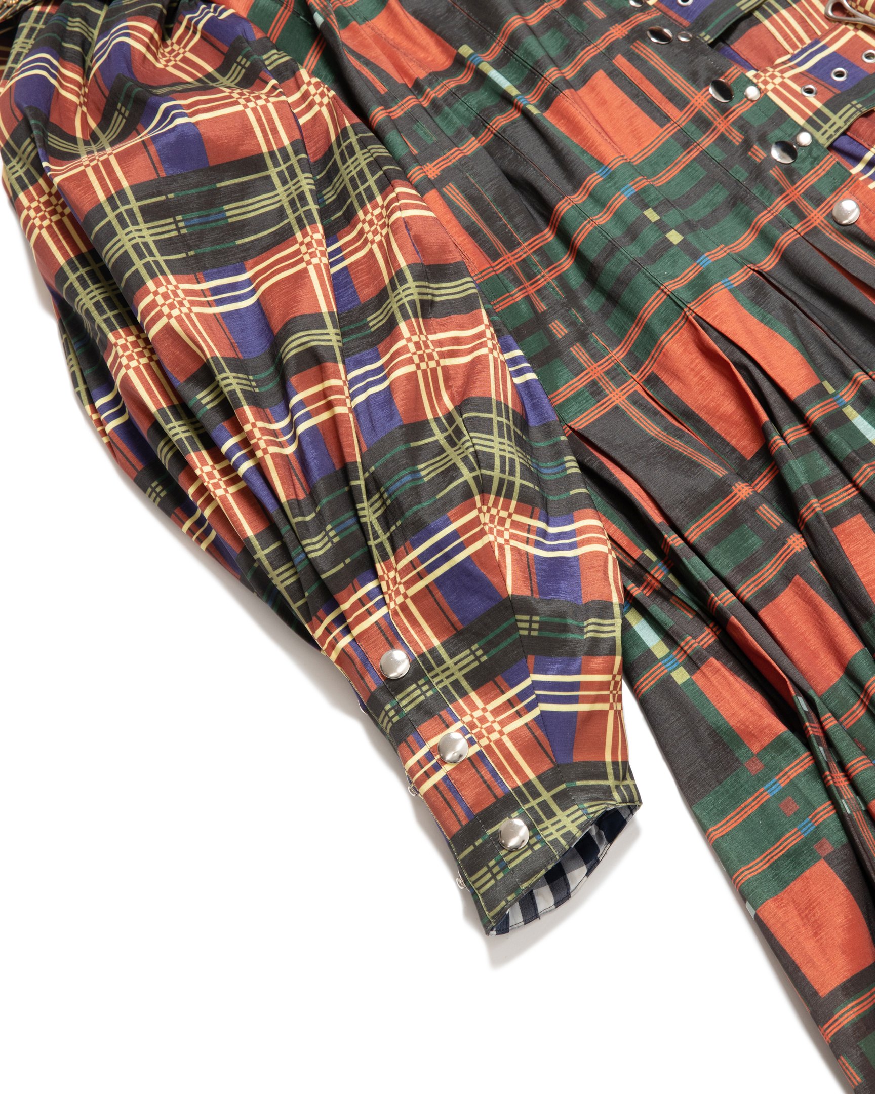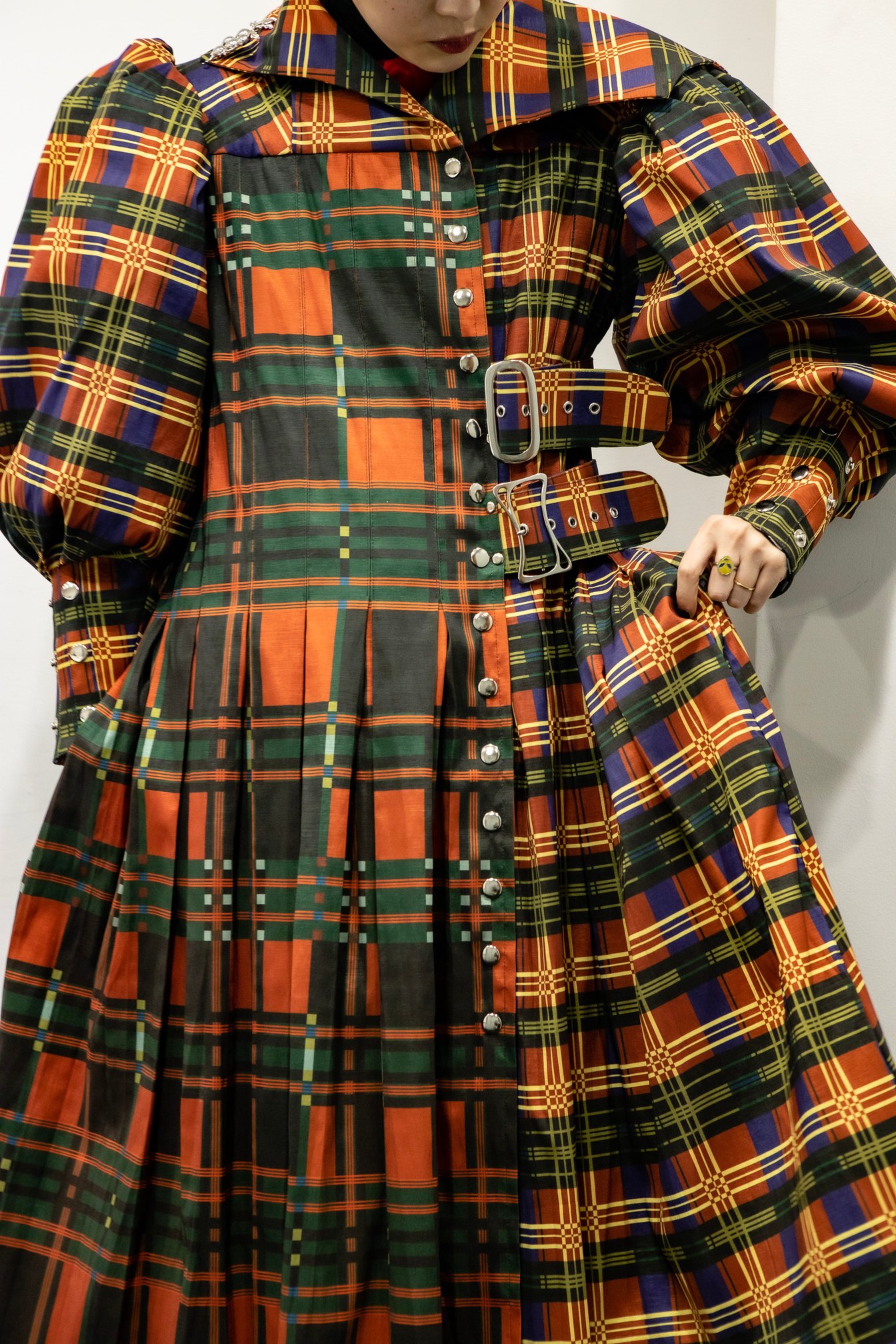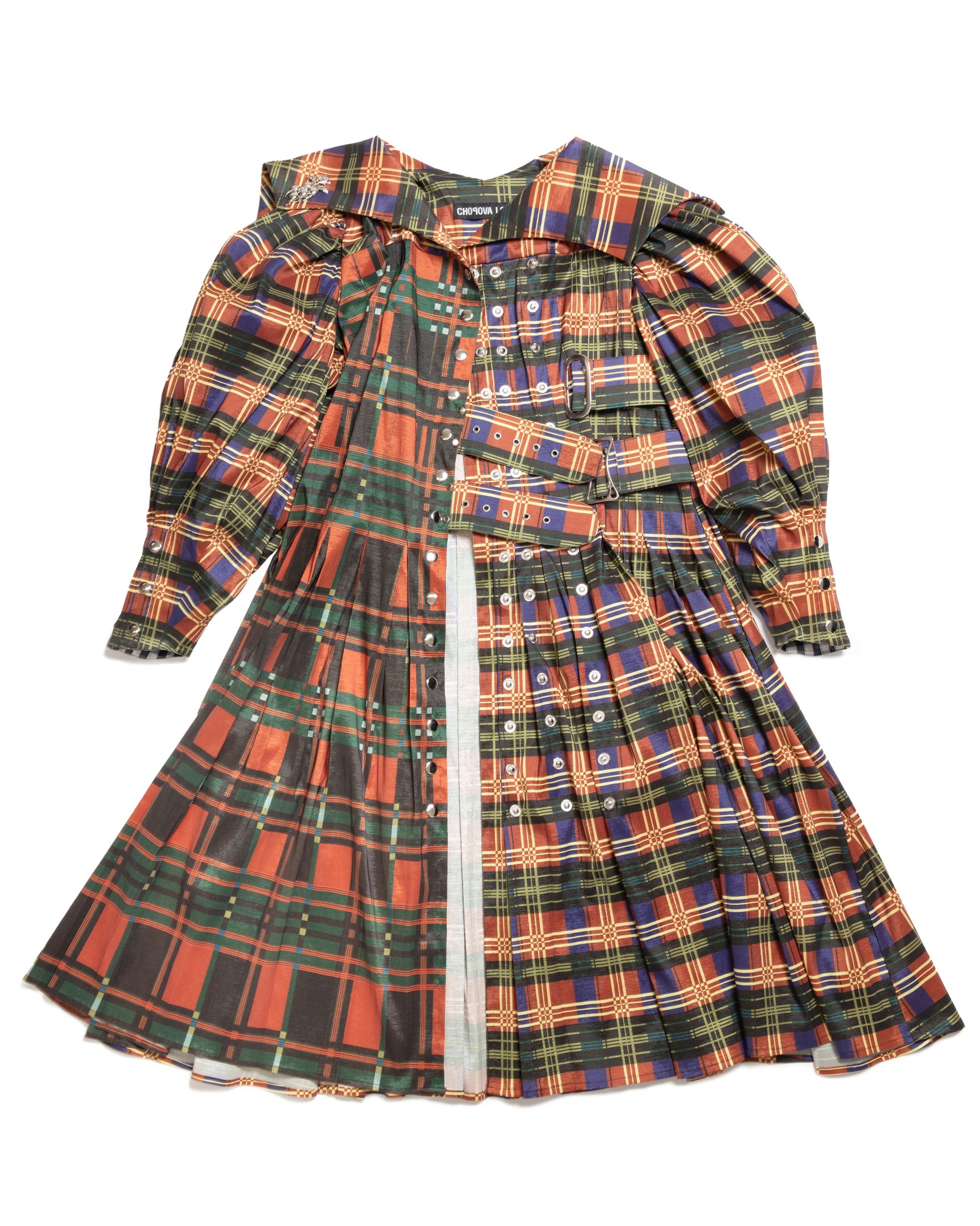4. CHOPOVA LOWENA バルーンスリーブ タータンチェック タフタドレス