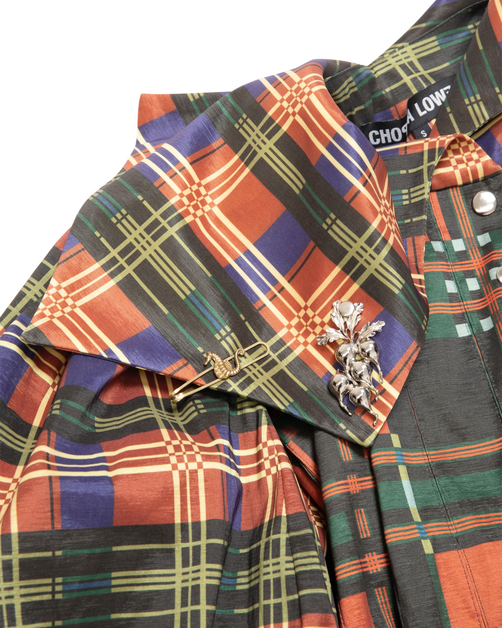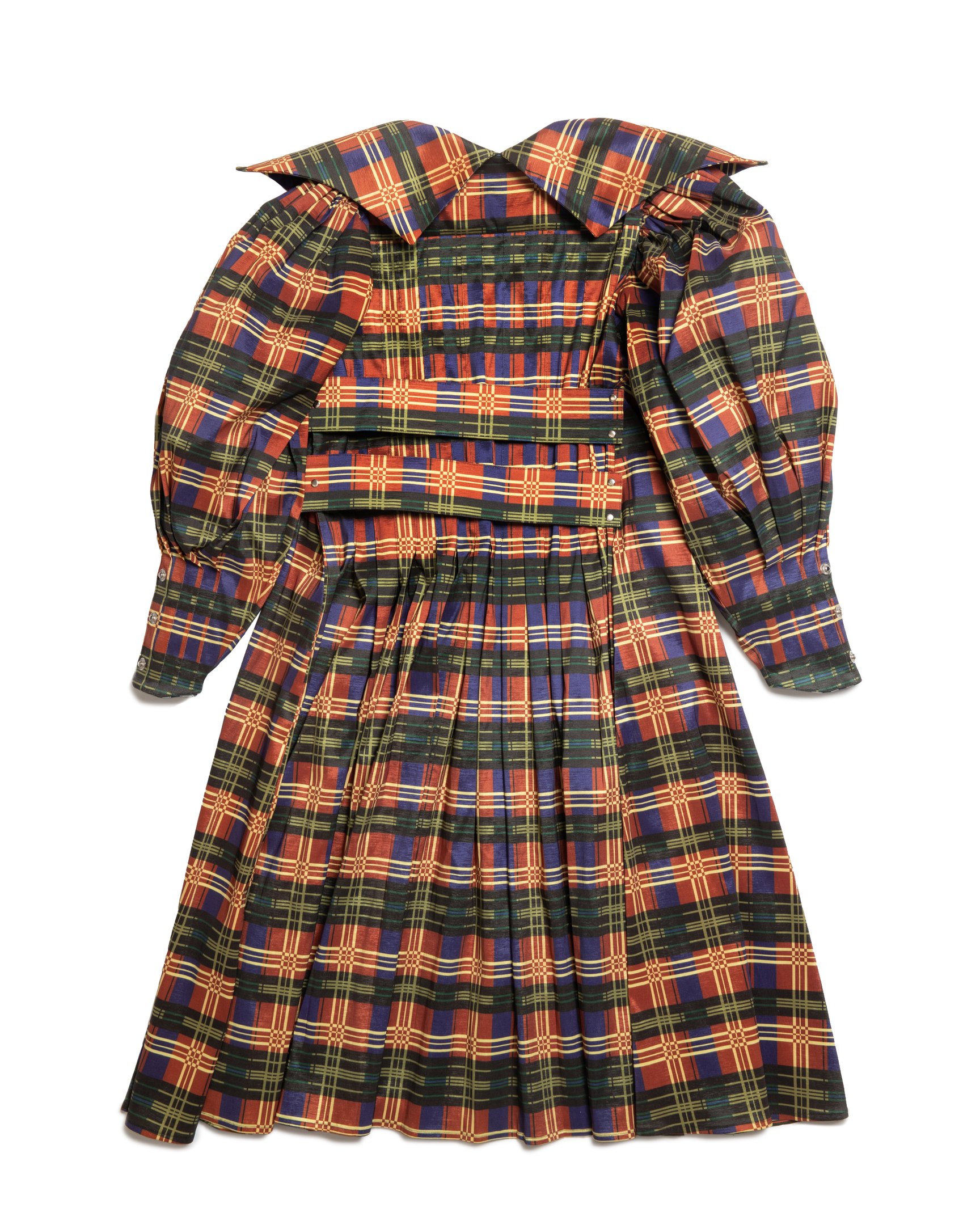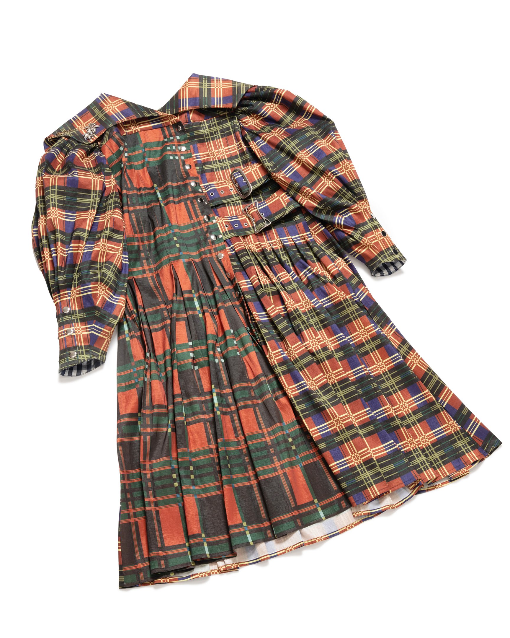 4. CHOPOVA LOWENA バルーンスリーブ タータンチェック タフタドレス