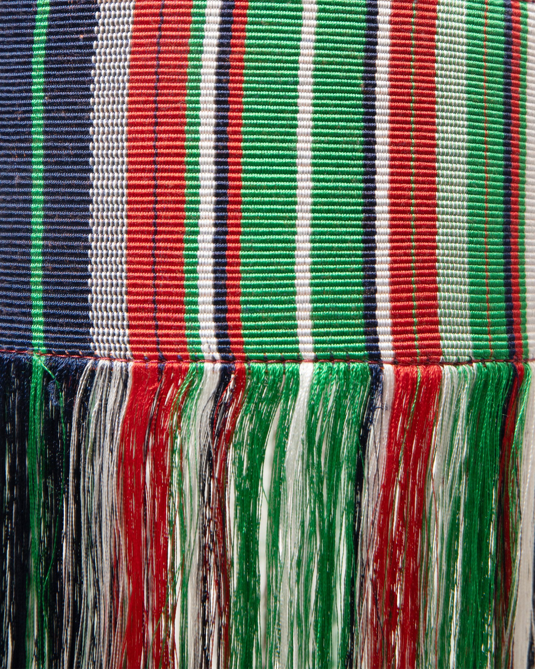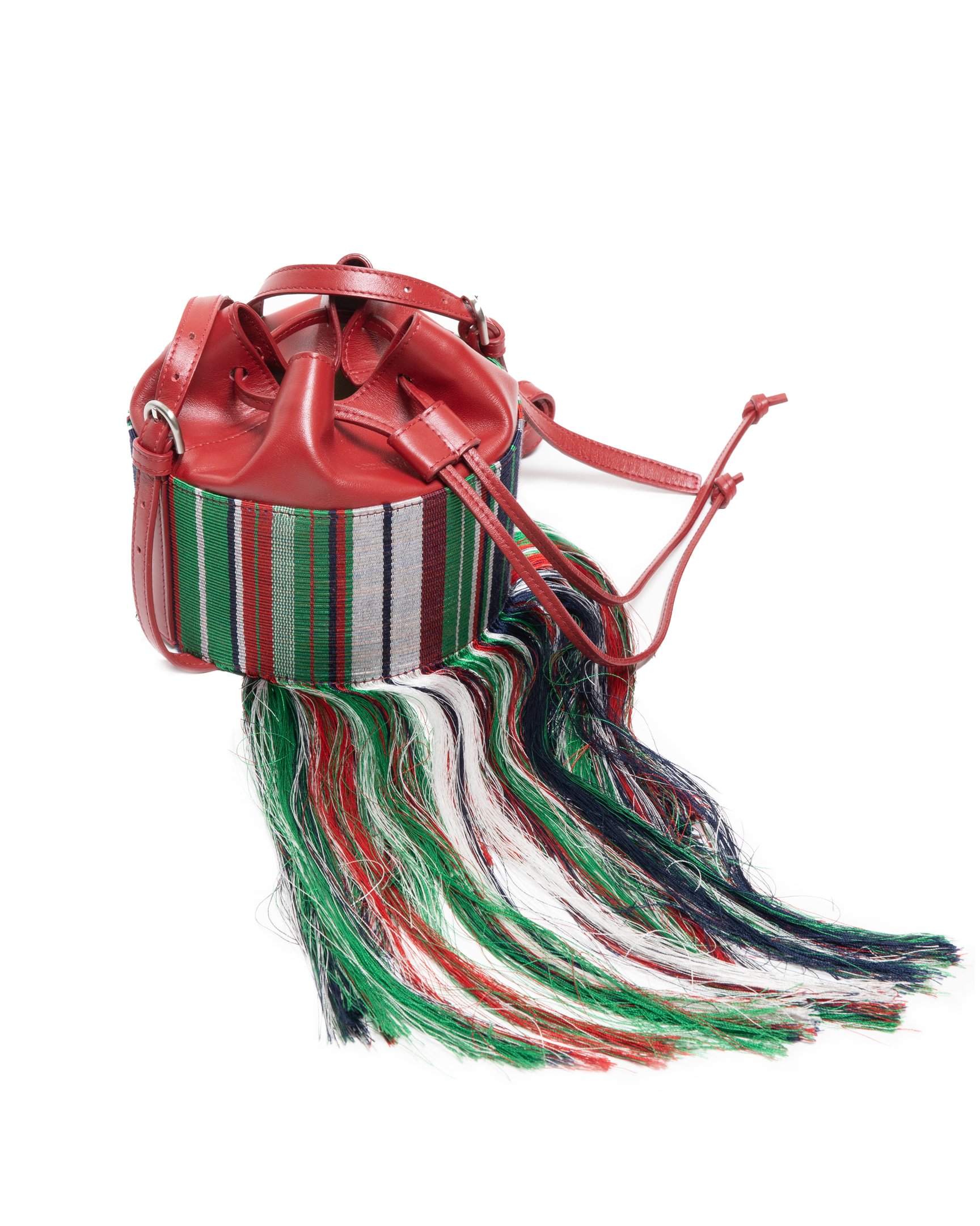 大平:ナイジェリア出身の男性デザイナーが手掛けるブランドで、彼のルーツでもあるヨルバ族に伝わる「アショオケ」という伝統布を使っているんです。素材や色合いに、彼の触れてきたカルチャーを感じて、他にはないデザインで素敵だなと思って買いました。「サガン・ヴィエナ」を買ったのも初めて。コラボバッグはいくつかデザインがあったんですが、丸い形が可愛いなと思ってこれにしました。