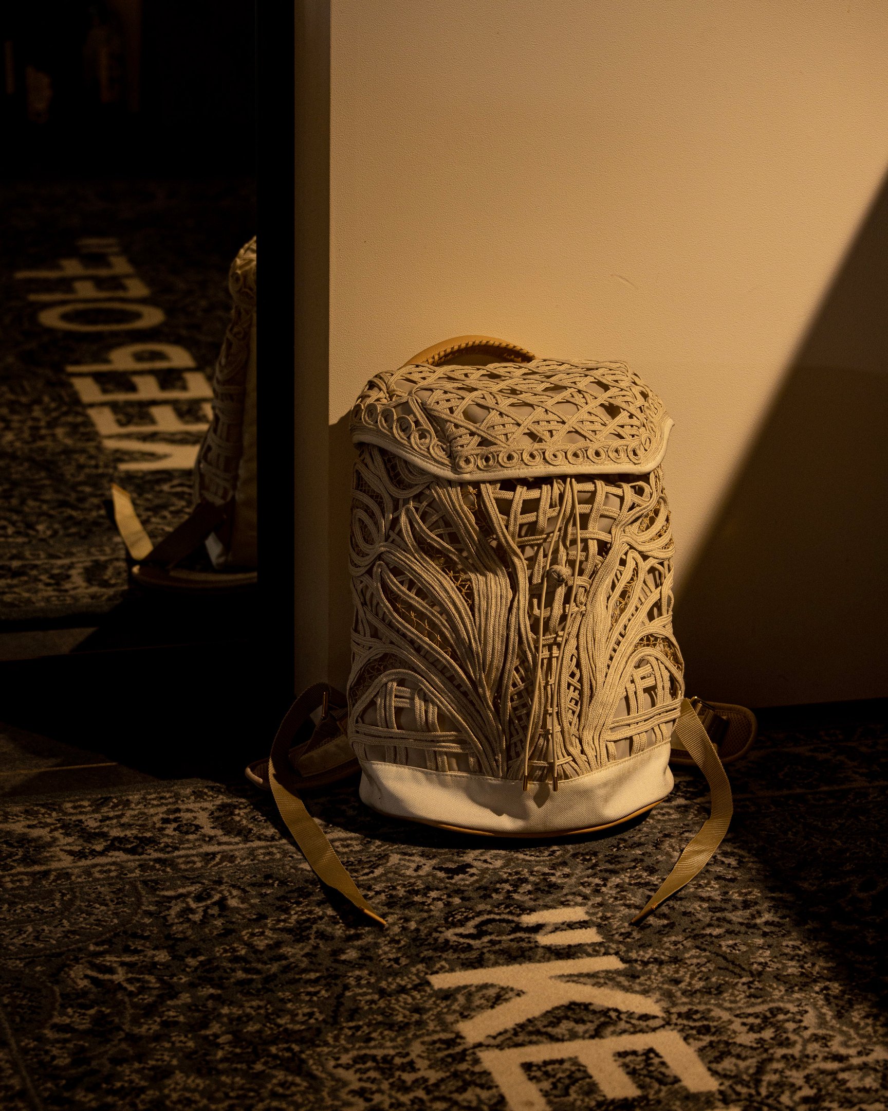 山本:デザイナーの黒河内真衣子さんと知り合ったのは10年以上前でしょうか。彼女のクリエイションはいつも気になり展示会にもちょくちょくお邪魔していて、このバックパックは2020-21年秋冬コレクションでオーダーしたものです。