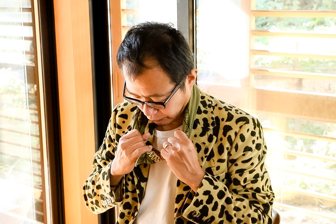小笠原:古田さん(TOGAデザイナー古田泰子)の好きなメンズスタイルと自分の好きなスタイルが重なっている部分があるんですよ。ちなみに古田さんはマスク代わりにこれを巻いて会社まで歩いたりしているらしいです。
