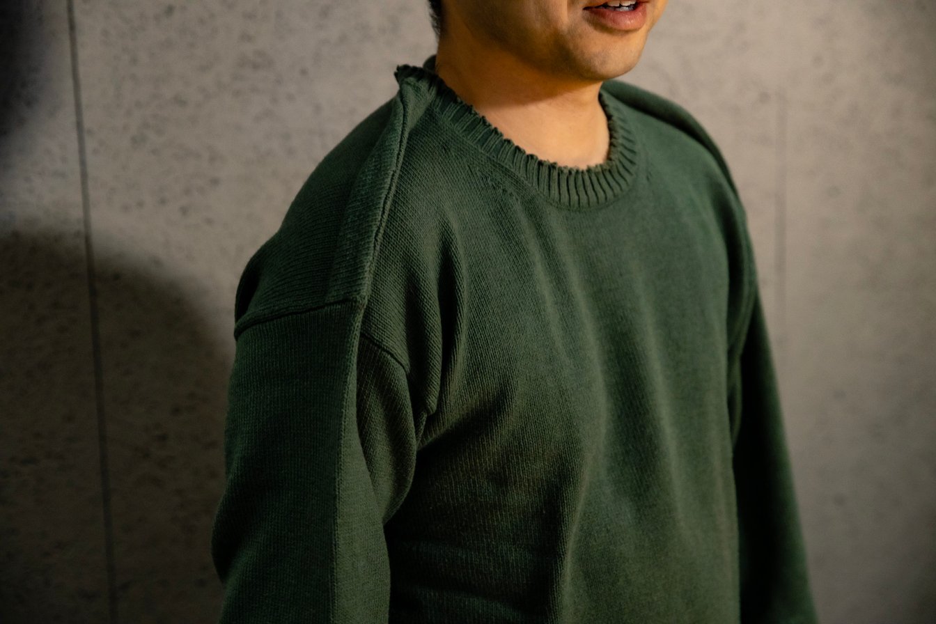 F:このタックと呼べばいいんですかね、もう一枚ニットが重なったような輪郭でシンプルだけど面白いデザインです。どこで買われたんですか?