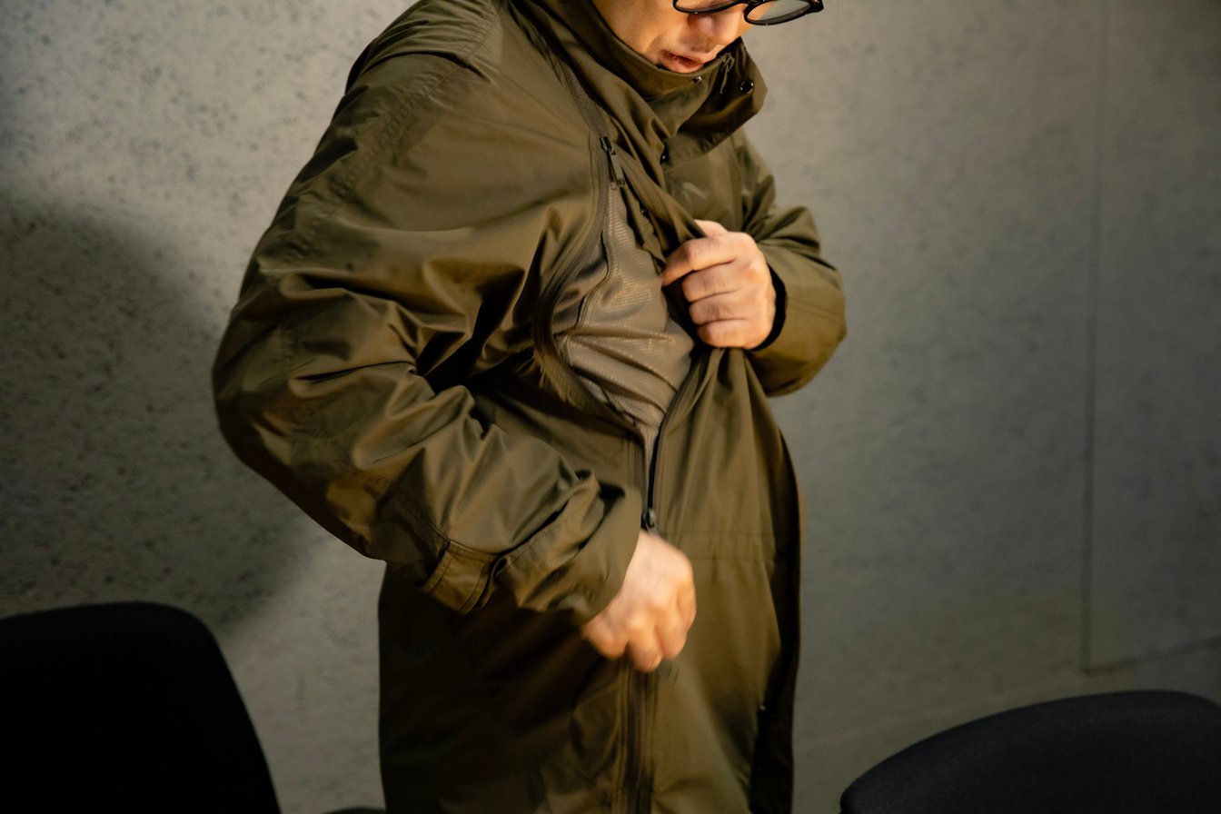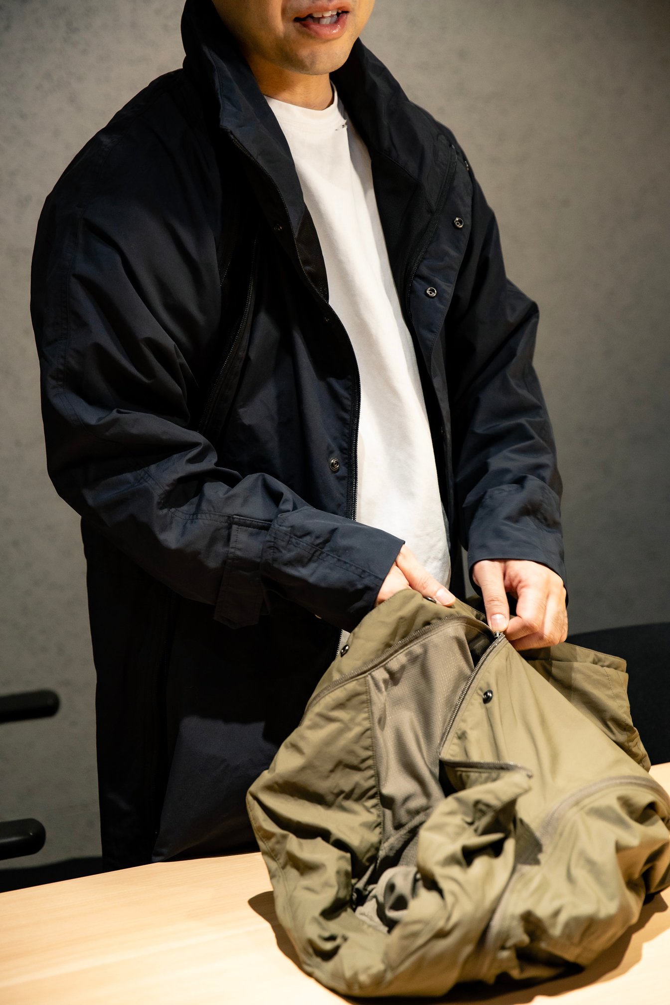 光山:ファイナルホームのコンセプト通りのアイテムで、大きい違いは多重ジップじゃないところと素材の高機能化かな。ジップは1つで左右共有していて、裏地との間に色々詰める感じですね。オリジナルは普通のナイロンに対して、こちらは東レのH2OFFで耐久性強化と撥水性を確保している点が特徴です。
