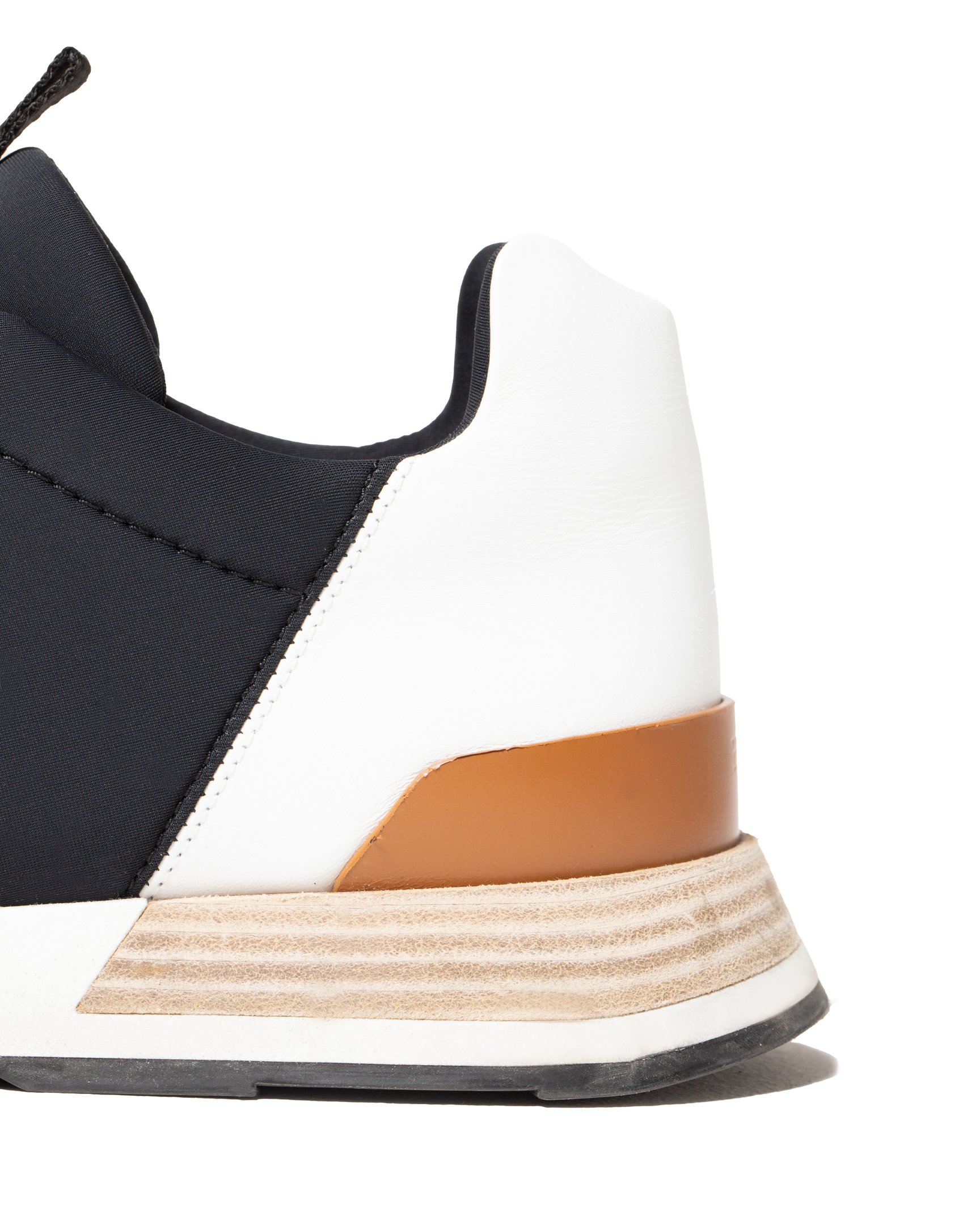 光山:スポーツブランドだったらまずやらないですよね。「エルメス(HERMÈS)」は、実はスニーカーの歴史が他ブランドに比べて長いんです。クラシックな形が多かったのですが、ここ最近はハイテクモチーフも取り入れて独自のルックスを確立してるなって思います。このバスターも、ハイテク感とメゾン感が融合してるところが流石ですね。フットウェアを長年手掛けているピエール・アルディ(Pierre Hardy)のセンスを感じます。