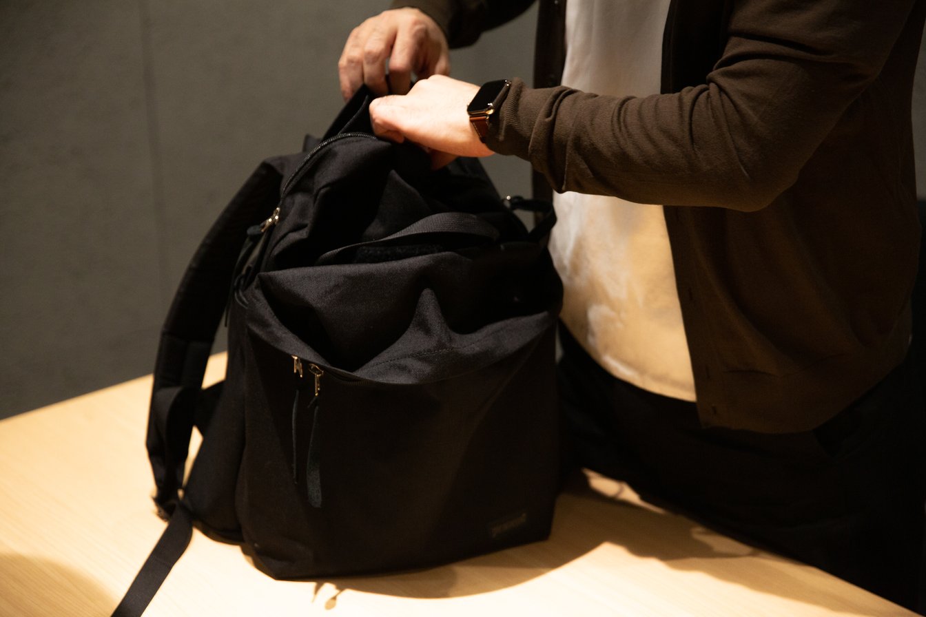 光山:バックパックは好きで色々試してるんですけど、なんだかんだで「コム デ ギャルソン(COMME des GARÇONS)」のバックパックか「イーストパック(EASTPAK)」のBACK TO WORK BACKPACKに戻っちゃうんですよね。ただ不満もあってより良いものを日々探してたら、これが見つかったんです。
