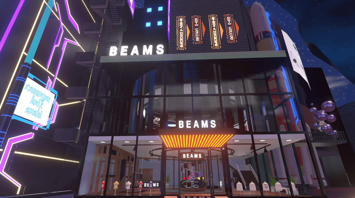 ビームスのほかにも、ディズニーの世界観をVRで体験しつつアイテムの購入もできる「バーチャルディズニーストア」や、株式会社大丸松坂屋百貨店と株式会社阪急阪神百貨店という大型百貨店、行政からは初となる京都府精華町も出展中。