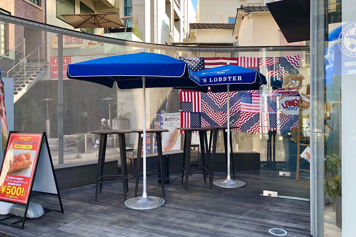 テラスの隣にある「JOURNAL STANDARD 表参道メンズ」を見ると、ここにもポップなロブスターのイラストが。