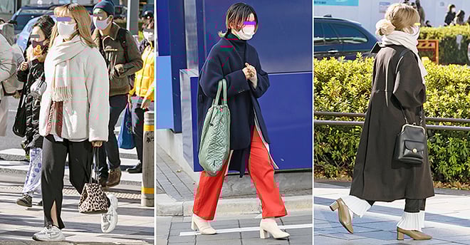 緊急事態宣言が1カ月延長となって最初の土曜日、2021年2月9日。思ったよりもポカポカ陽気で、日中はアウターを手に持つ人もちらほら。取り上げた3つのテーマと、渋谷、原宿、新宿の路上で観察されたファッションの速報は、2月12日に公開の予定です。どうぞお楽しみに。その前に、去る1月9日に実施した2021年最初の定点観測について振り返っておきましょう。注目したアイテム・スタイルは、「女性裾揺れパンツ、うち、フレアパンツ」、「ボリューム・ネック(スタイル)」、「ボリュームネック・シューズ(厚底靴)」の3つです。直接渋谷、原宿、新宿地点の1月のストリートファッションのローデータをご覧になりたい方はこちらからどうぞ。*2021年1月の定点観測・トップページ:https://www.web-across.com/observe/p7l7560000052tl8.html* * *