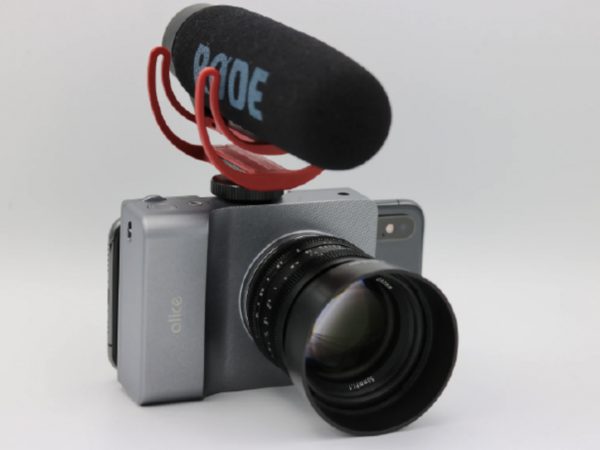 Aliceはレトロなコンパクトカメラのような外観で、背面にスマホを設置し、スマホがカメラのビューファインダーになる。スマホに専用アプリ(iOS、Android)をダウンロードし、スマホとAliceをワイヤレス連動させることで、スマホから各種操作ができるようになる。