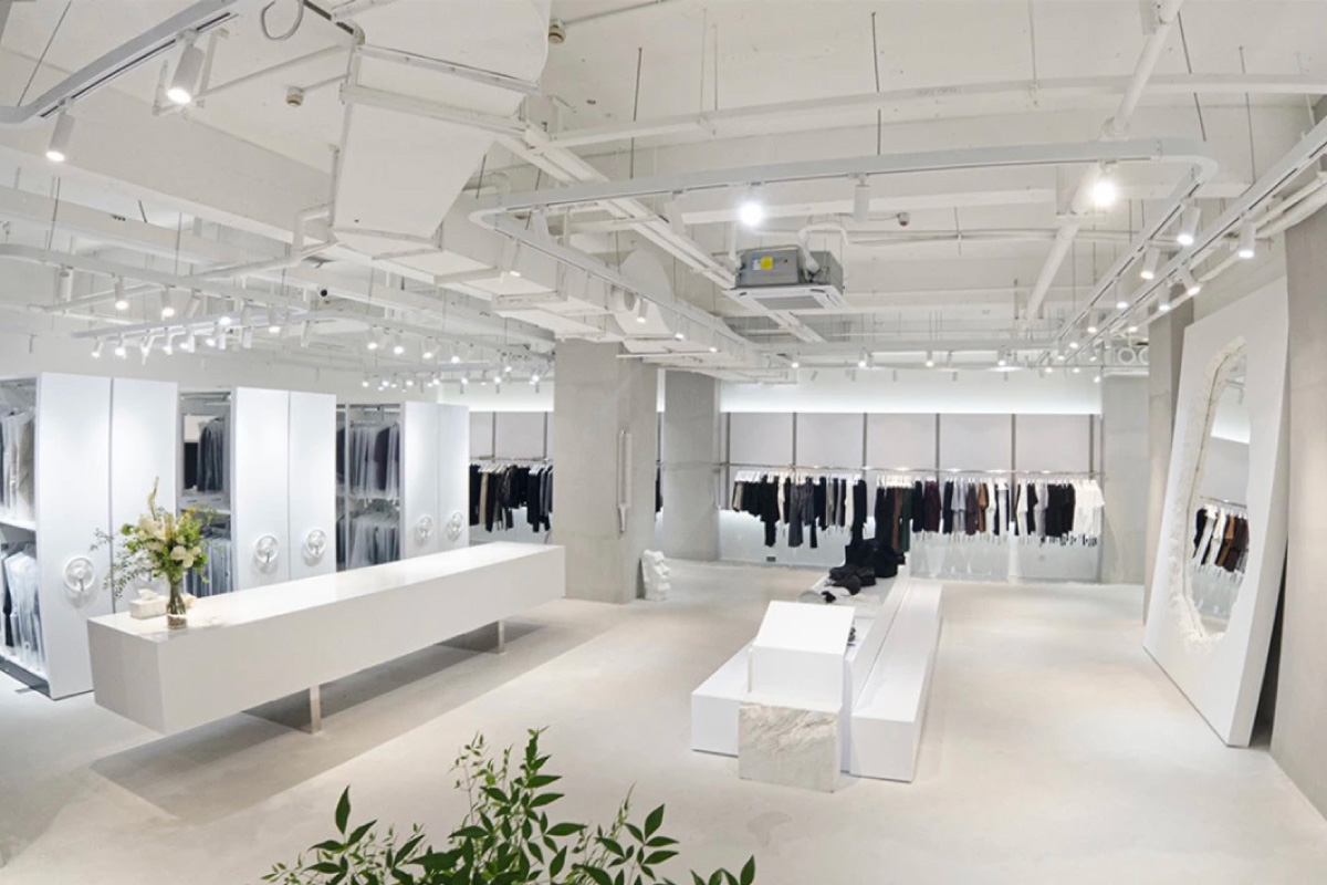 店舗も商品と同じくミニマルなスタイルを貫き、その世界観をわかりやすく体感してもらえる空間となっている。
