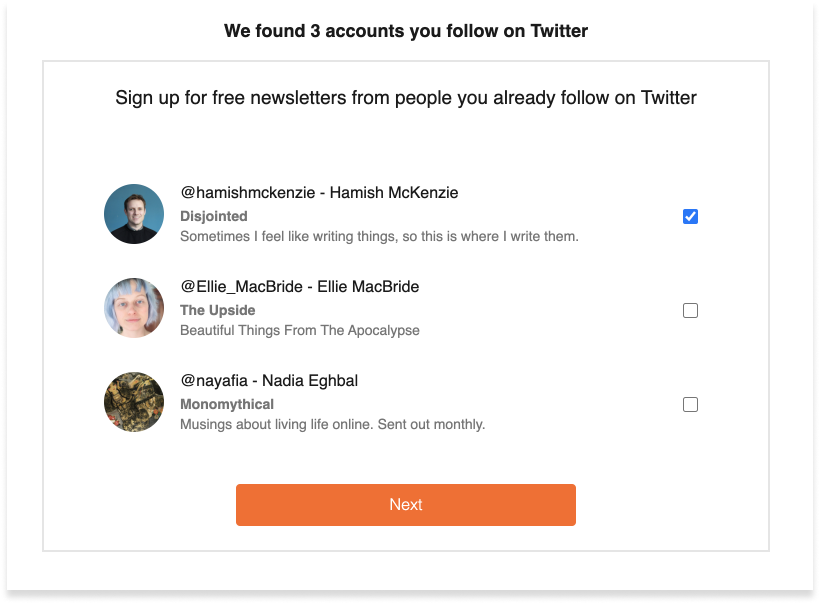 特にこの二つ目のユーザー獲得方法は素晴らしいが、両方ともTwitterに依存している戦略となる。Twitterがもし自社のメルマガ配信サービスを始めたら、Substackで作る理由はどこにあるのかが問われるようになる。