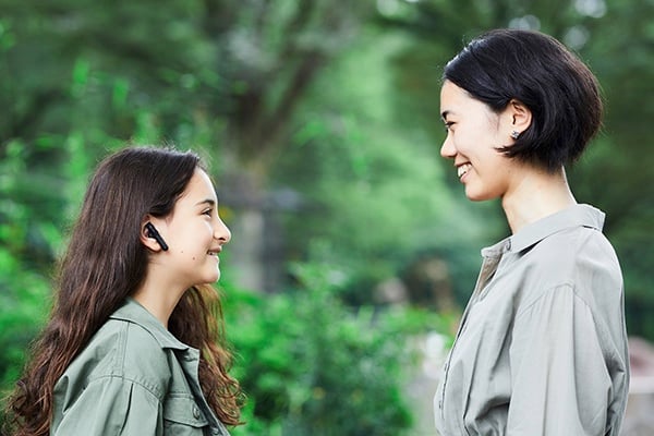 なかでも注目したいのは、起動するのにボタンを押す必要がないという点だ。デバイスを耳に装着している状態で話すだけで通話が開始されるため、ストレスフリーで仲間との会話を楽しむことができる。