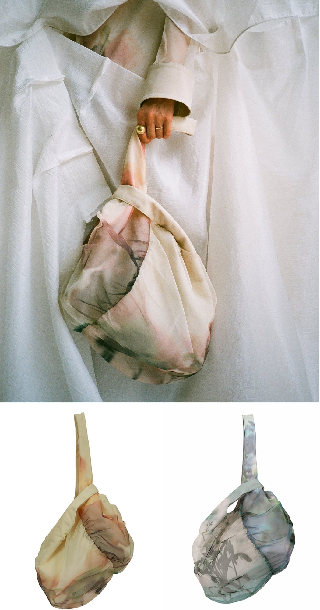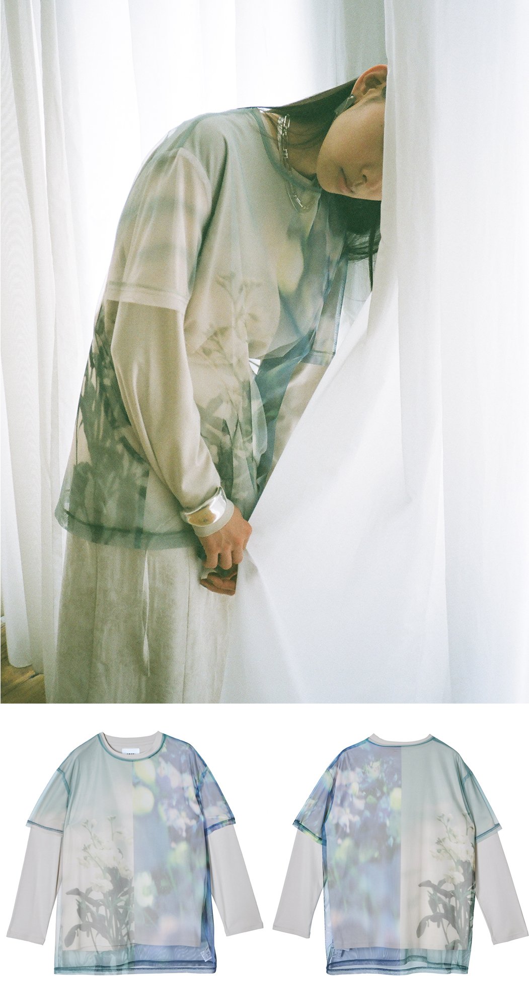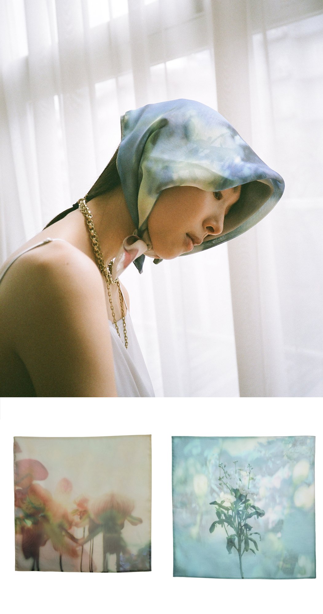今回のコラボでは永瀬の作品をチュール素材にプリントしたアイテムが登場。インナーにシルケット加工を施したカットソー素材のタンクトップが付いたレイヤードTシャツ(1万3,000円+税)、インナーに肌心地の良いカットソー素材のTシャツが付いたロングTシャツ(1万5,000円+税)、体型を拾わないサイズ感でデイリーにもオケージョンにも使えるワンピース(2万4,000円+税)、細かいプリーツを施したシフォンがプリントの隙間から見え隠れするスカート(2万円+税)、左右で異なる作品をプリントしギャザーを寄せたデザインのバッグ(1万円+税)、両面に異なる作品をプリントした2枚仕立てのスカーフ(7,000円+税)の6型がラインアップする。「無邪気なエネルギーで好奇心を解き放っている。」そんな思いを込めた永瀬の作品の中から花の写真をメインに選定し、世界観やニュアンスを最大限に引き出せるよう2枚の写真を組み合わせた。繊細な色彩や女性らしい抜け感を素材やディテールで表現している。
