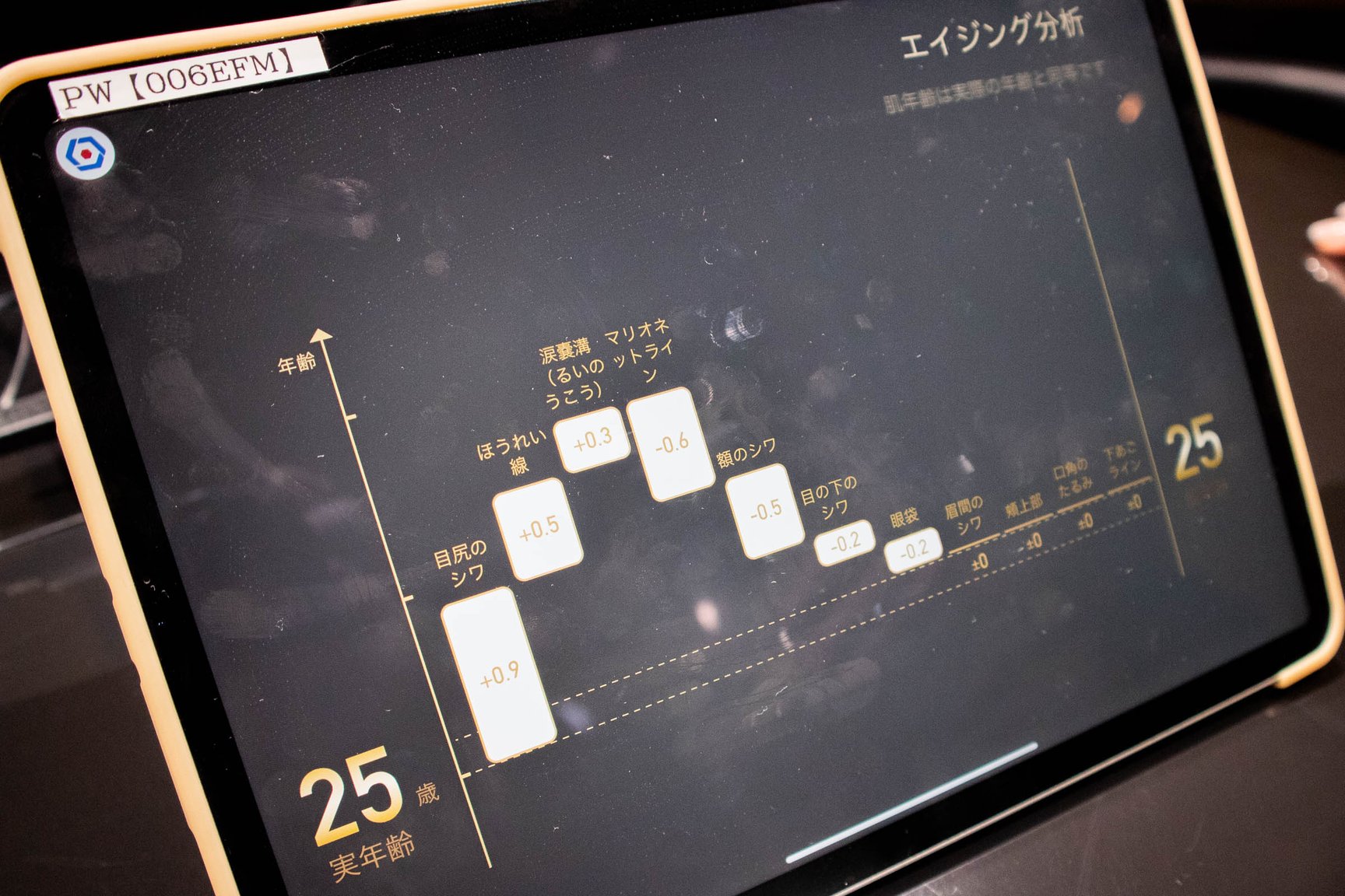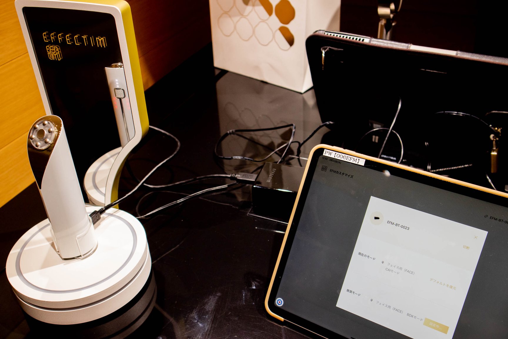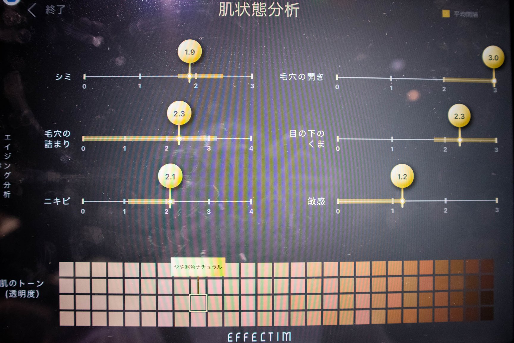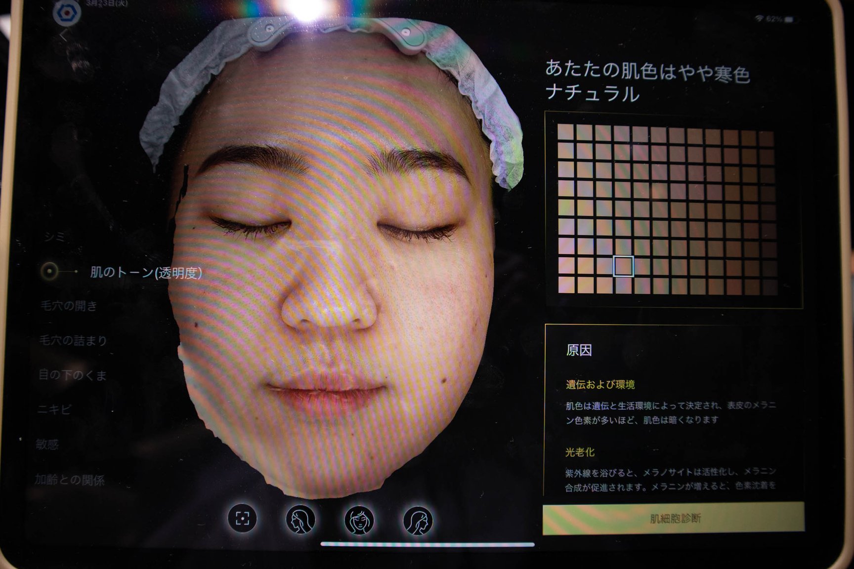 美容機器と美容液を組み合わせたエフェクティムの肝となる3D肌解析機は、中国とアメリカに拠点を置き、顔認識およびバーチャルトライオンサービスを提供している企業メイツ(Meitu)と共同開発。スキャニングポッドと呼ばれる小部屋型の機械の中で顔の正面と側面を撮影すると、肌状態をほうれい線やシワ、毛穴の開きといった18項目を、3D画像化した顔写真とともに確認できる。資生堂独自のアルゴリズムにより、解析結果から肌のダメージ具合に最適なトリートメントメニューをAIが考案。ヤーマンの技術を活用した美顔器に、パーソナライズしたメニューをその場でインストールする。AIによるパーソナライズメニューの総数は非開示としたものの、様々な肌状態に対応可能だという。
