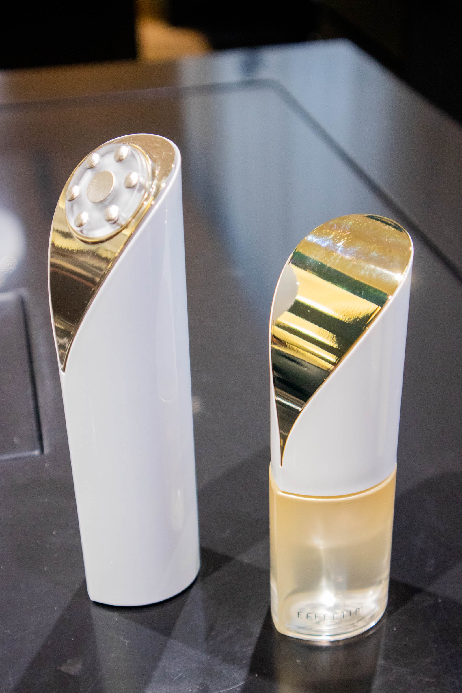 商品はフェイス用のデバイス(7万5000円)と美容液(1万3000円)、目元用のデバイス(6万4000円)と美容液(1万1000円/いずれも税別)の4点を発売。美容液には、資生堂が注力する毛細血管や真皮幹細胞に対する研究結果から考案した独自処方「STEM Complex」を配合しており、弾むようなハリ感に満ちた肌に導く。美顔器を使うことでこれらの成分を効果的に肌の奥に届けることが可能になっている。