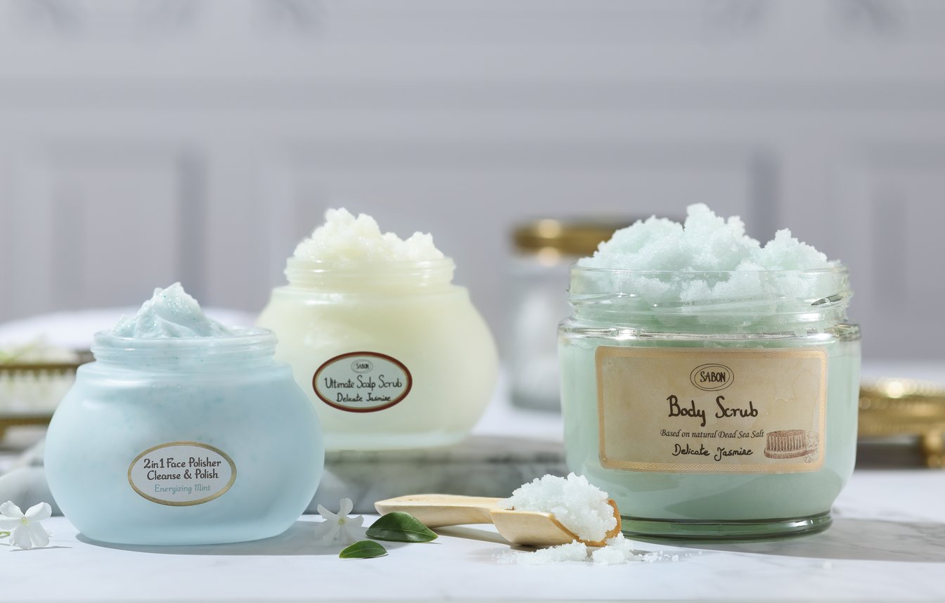 SABONのスクラブ製品には、ミネラル豊富な死海の塩と、優れた美容効果を持つボタニカルオイルなど厳選したナチュラルな原料を配合。美しい素肌を導くための、「落としながら与える」ケアを叶えてくれるアイテムです。