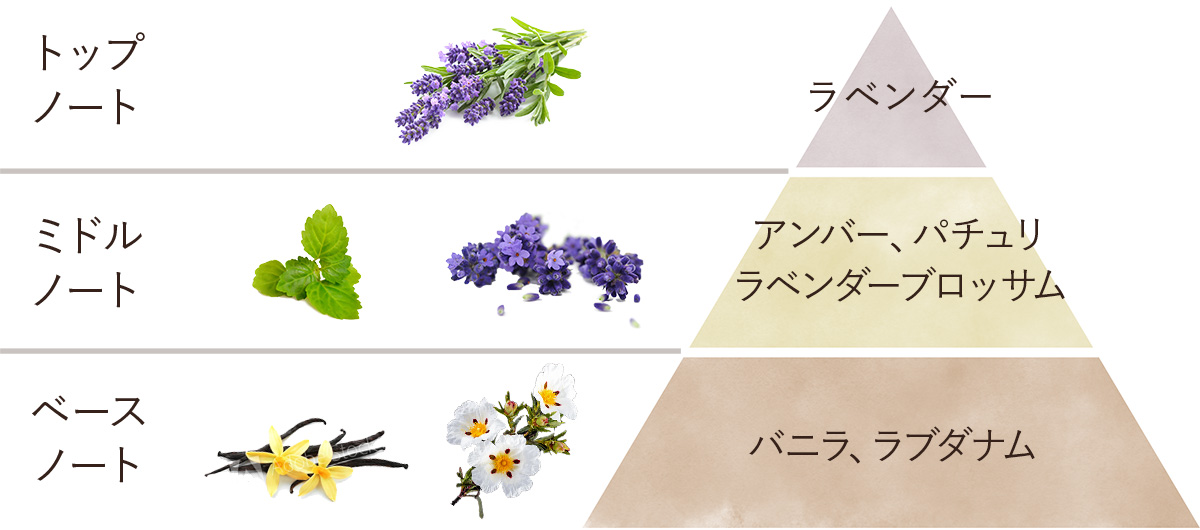 神秘的なパチュリ、フレッシュなラベンダー、甘いバニラを組み合わせた柔らかなパウダリーノートにも注目ですよ。