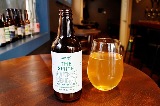 同店のイチオシの国産ハードサイダー「SON OF THE SMITH(サノバスミス)」。長野のリンゴ農家が”farm to cheers(農場から乾杯まで)”をテーマに手造りする。