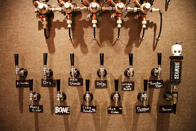 クラフトビールでお馴染みのタップだが、そのほとんどがハードサイダーという品揃えは国内で例を見ないという。常時8~10種類を揃える。