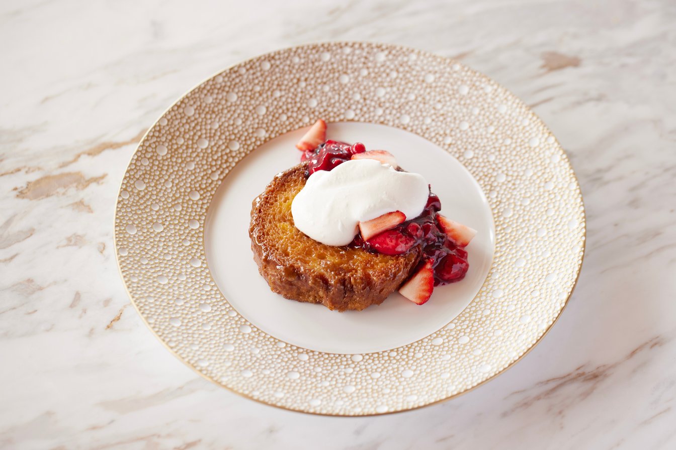 キャラメリゼ仕上げのフレンチトーストに、甘酸っぱい5種類のミックスベリーソースを添えた『ブリオッシュフレンチトースト&ベリーソース(2名用)』(4,180円)もおいしそう。