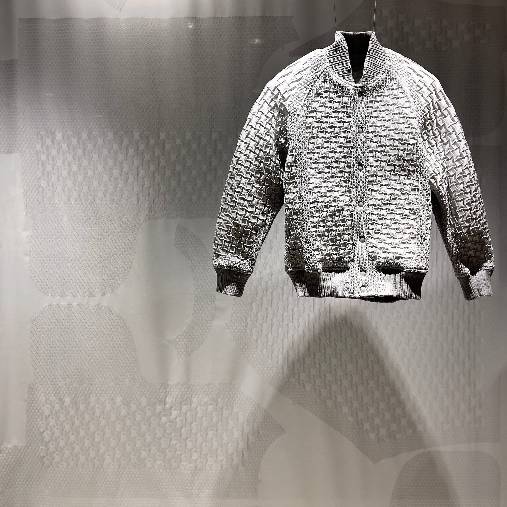 2020年10月、「TADANORI YOKOO ISSEY MIYAKE」の投稿でも書いたが、宮前氏はISSEY MIYAKEの中で熱心に研究開発(R&D)を続ける人物。「A-POC ABLE」の第1弾として発表されたType-Oと呼ばれるアイテム群は、その宮前さんが、Takramの渡邉康太郎さんと生み出したギフトアイテム、FLORIOGRAPHYで使われた”Steam Stretch”ーー蒸気を当て温めると元の形に戻る技術ーーで作られたブルゾンなど。